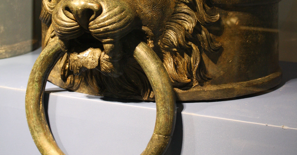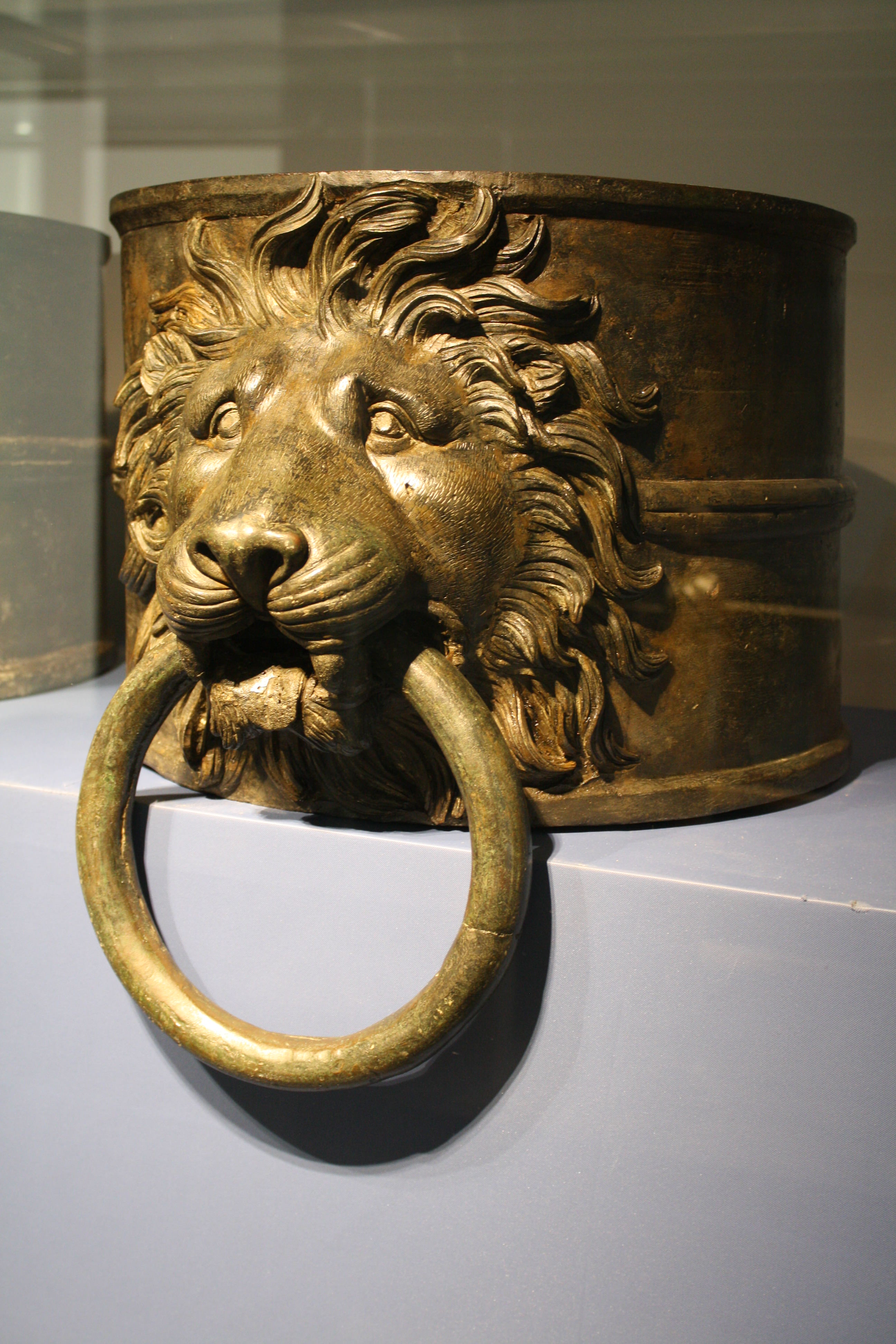 An early 1st century CE bronze lion, a typical decoration used to crown the rudder shaft of Roman warships. (Palazzo Massimo, Rome).