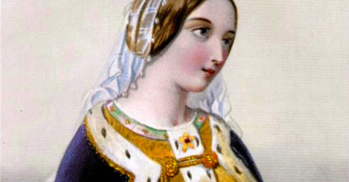 A 19th century CE illustration depicting Catherine of Valois (l. 1401 - c. 1437 CE). Catherine was the wife of Henry V of England (r. 1413-1422 CE) and mother of Henry VI of England (r. 1422-61 & 1470-71 CE). She also later married the Welsh courtier Owen Tudor (c. 1400-1461 CE) and so started the Tudor dynasty. (Engraved by W. H. Mote (1803-1871) after an illustration by J.W. Wright)