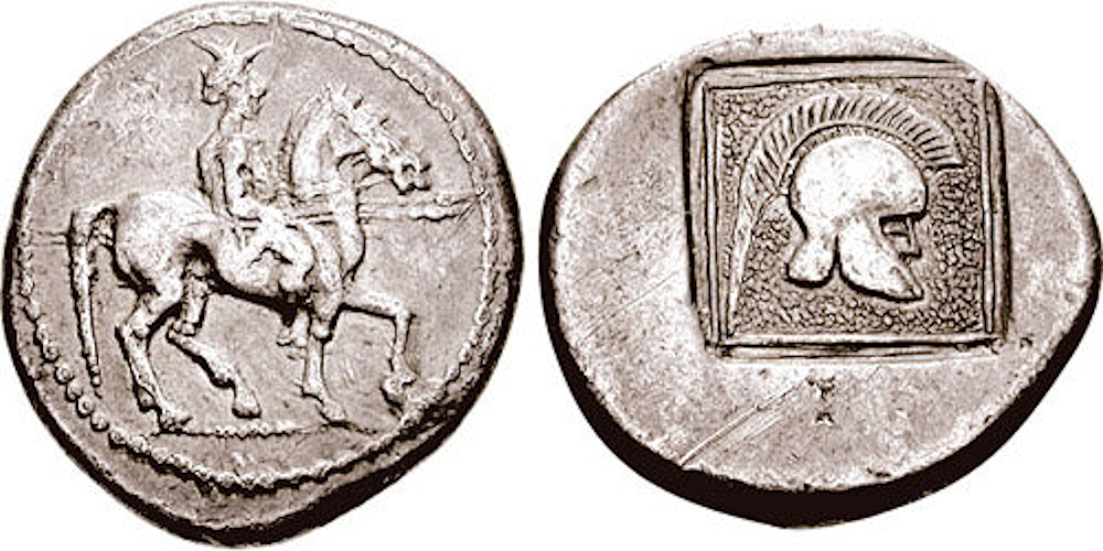 Silver tetradrachm, struck circa 480-470 BCE. Classical Numismatic Group, Inc. http://www.cngcoins.com