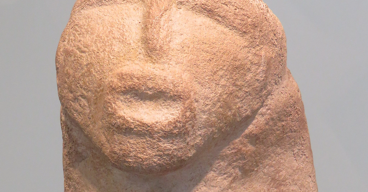 A quartz sandstone sculpture dating back from c. 6300 – c. 5900 BCE found at Lepenski Vir (Serbia). (Lepenski Vir Museum)