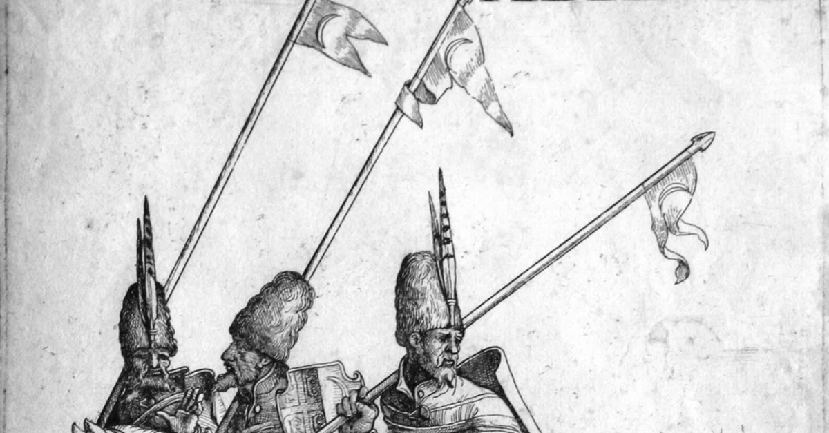 Hopfer, Daniel (c. 1470-1536 CE): Etching, Three Mamelukes with lances on horseback.