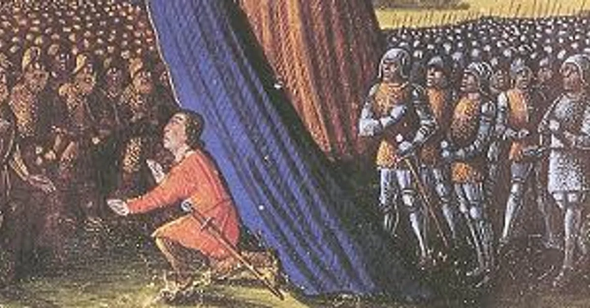 Balian of Ibelin surrendering the city of Jerusalem to Saladin, from Les Passages faits Outremer par les Français contre les Turcs et autres Sarrasins et Maures outremarins, c. 1490 CE.