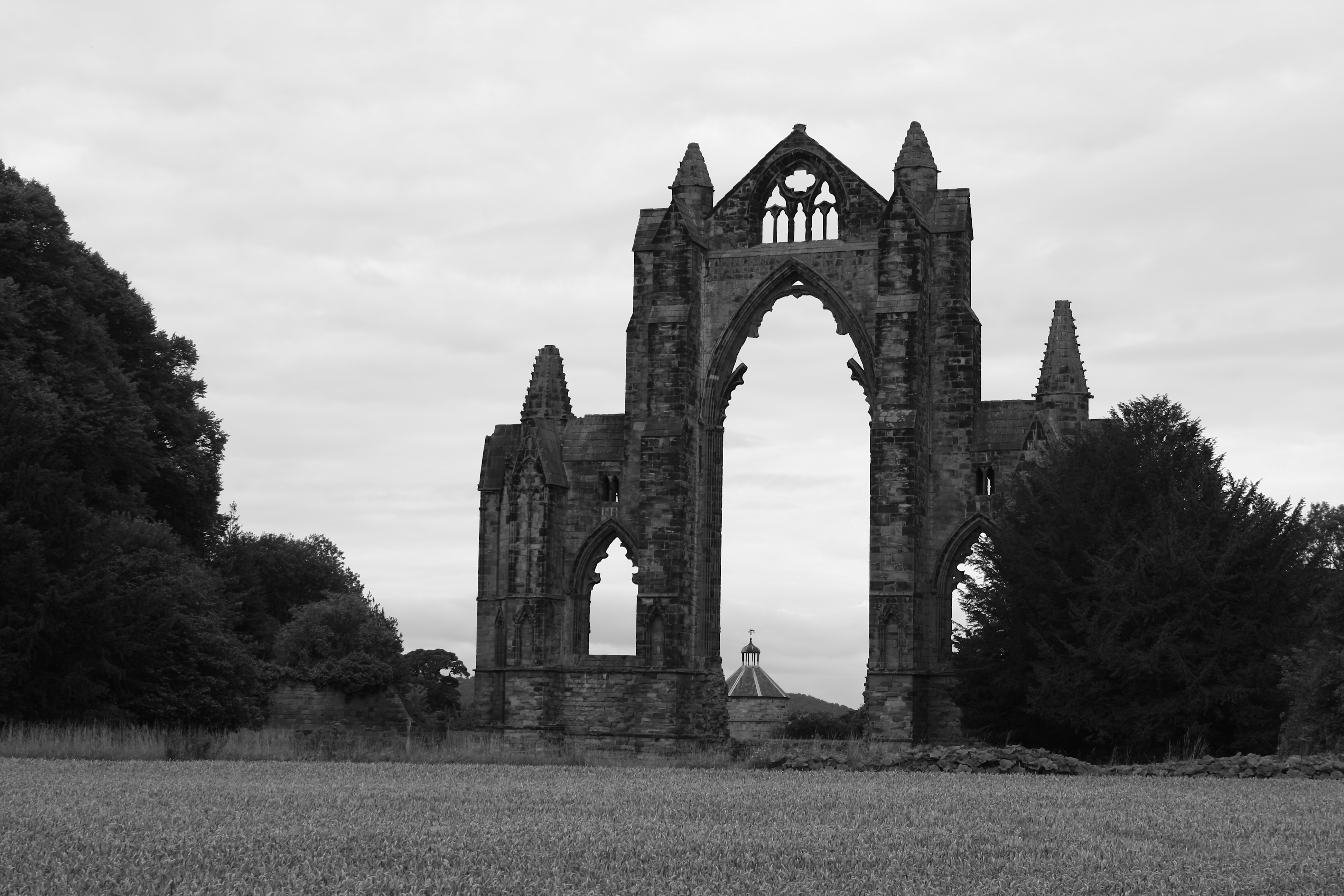 The ruin of Gisborough Priory, Guisborough, North Yorkshire (now Redcar and Cleveland), England. Founded in 1119 CE, the Augustinian priory was closed as part of the Dissolution of the Monasteries introduced by Henry VIII of England (r. 1509-1547 CE).