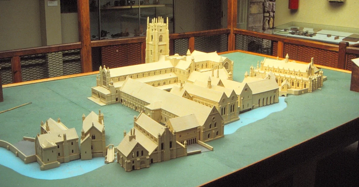 A scale model of Fountains Abbey, North Yorkshire, England. Founded in 1132 CE, the Cistercian abbey was closed in 1539 CE as part of the Dissolution of the Monasteries during the reign of Henry VIII of England (r. 1509-1547 CE).