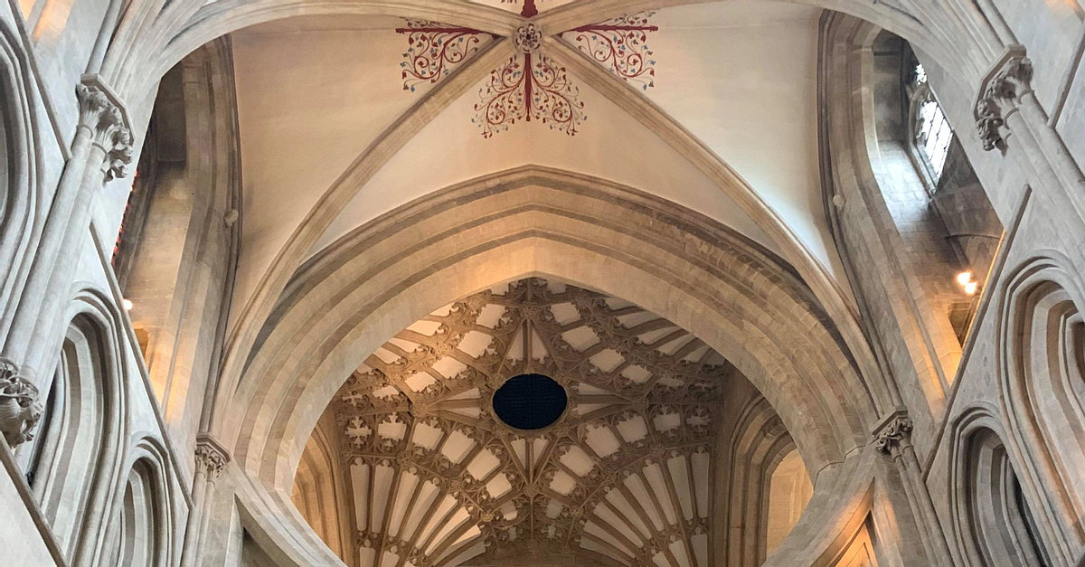 The scissor arches in Wells Cathedral constructed between 1338-48 CE by master mason William Joy (1329-1348 CE).