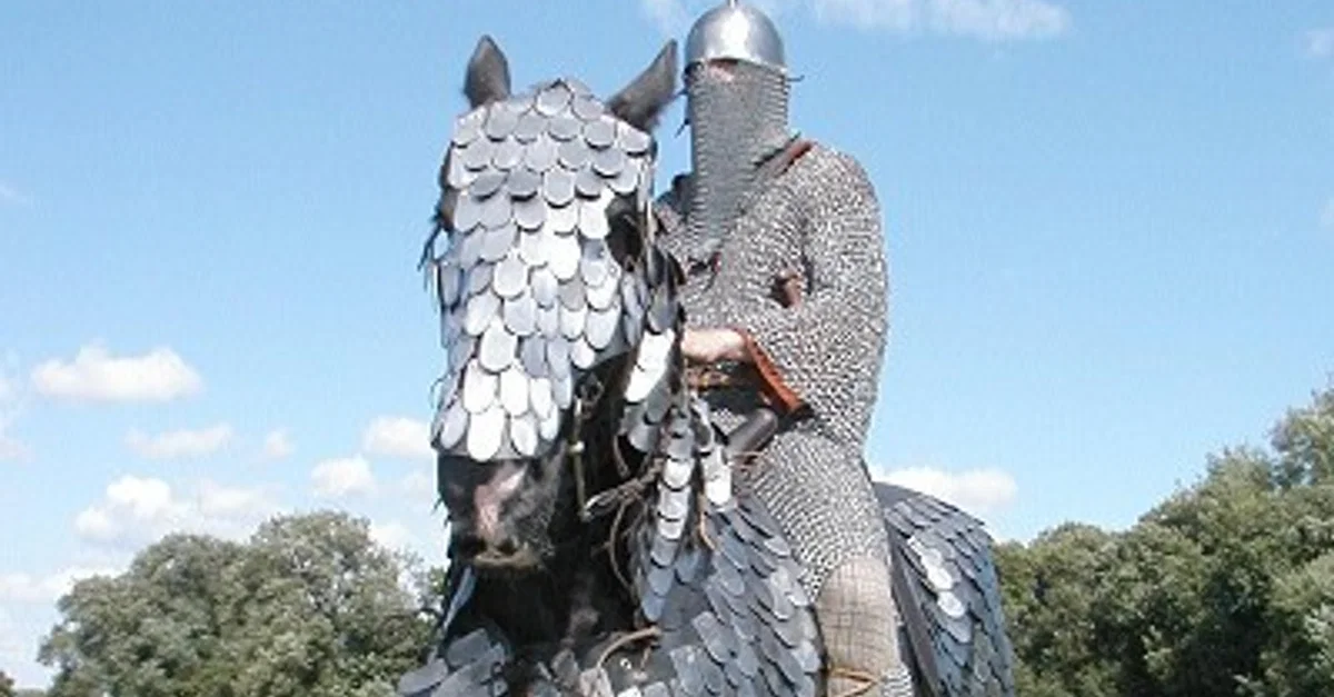 Historical reenactment of a Sassanian-era cataphract, complete with a full set of scale armor for the horse.