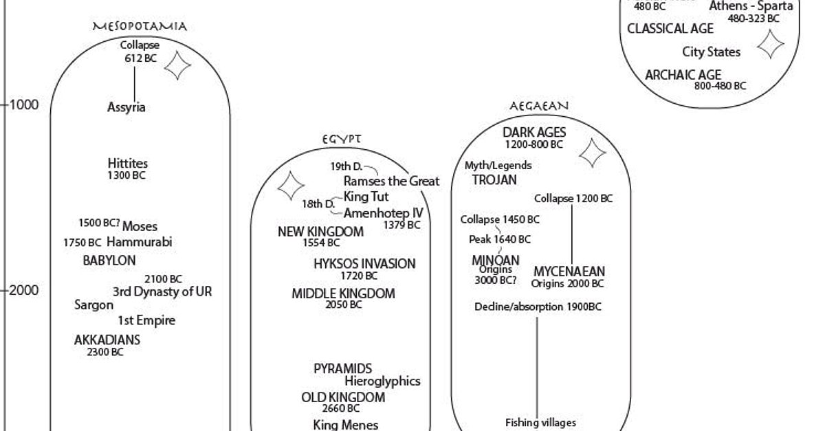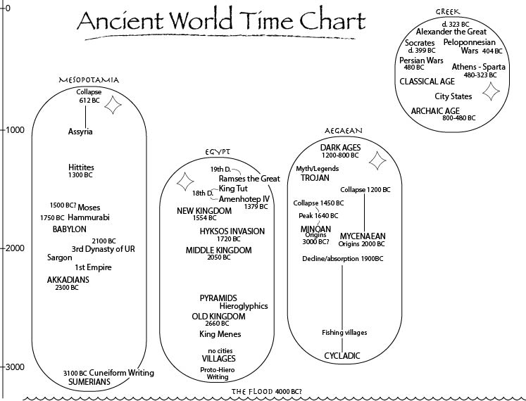 A traditional depiction of the major events of the ancient world (Mesopotamia through the Greeks).