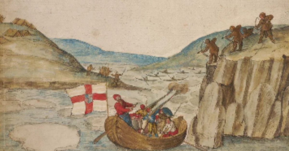 An illustration by John White of a violent encounter with Inuit during an expedition by Sir Martin Frobisher (c. 1535-1594 CE) to find the Northwest passage in the 1570s CE. (British Museum, London)