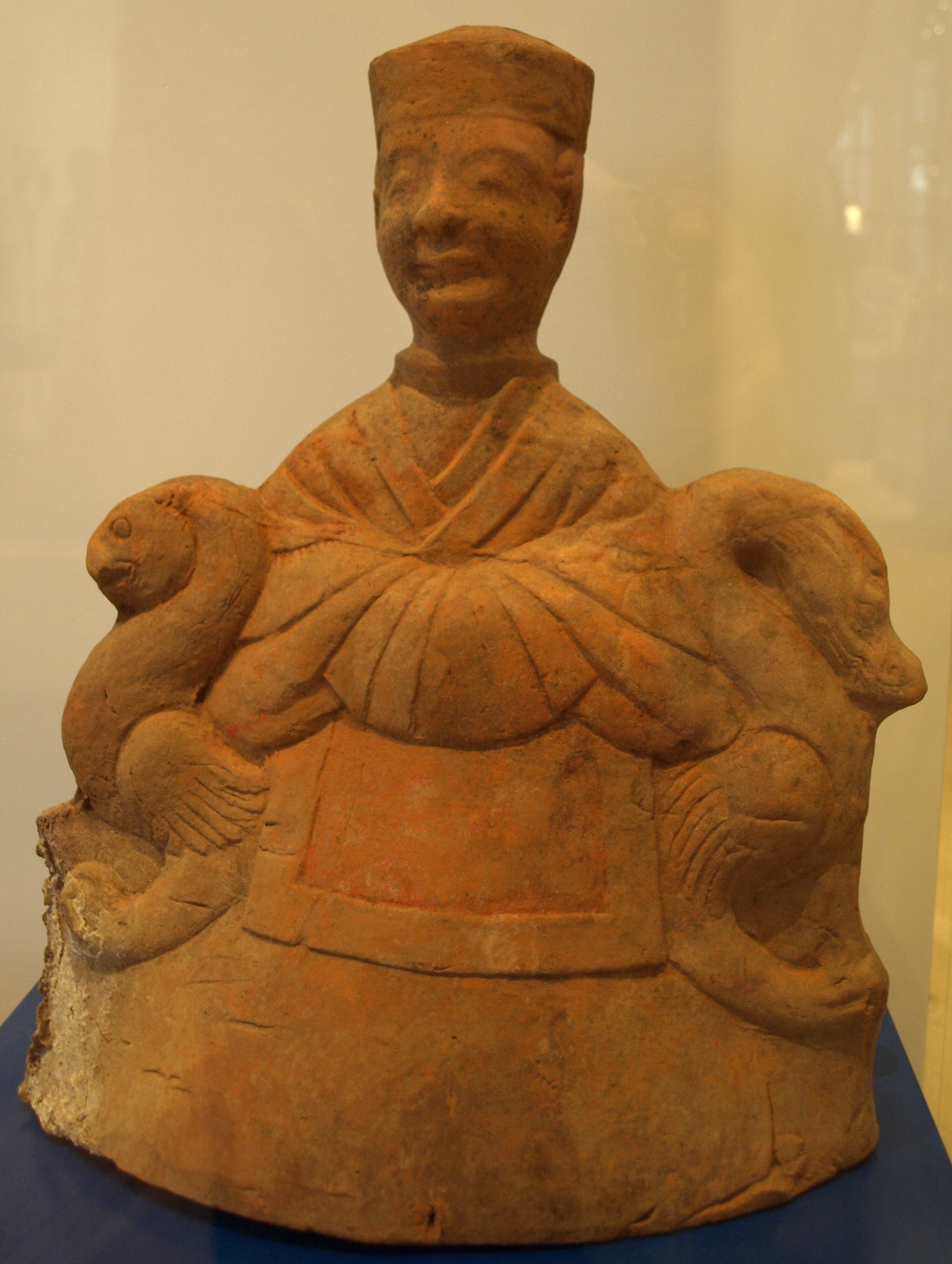 Earthenware figurine depicting the Queen Mother of the West. c. 2nd century CE, Eastern Han Dynasty. Cat # 2000.106.1740. From the Joey and Toby Tanenbaum Gallery of China at the Royal Ontario Museum.