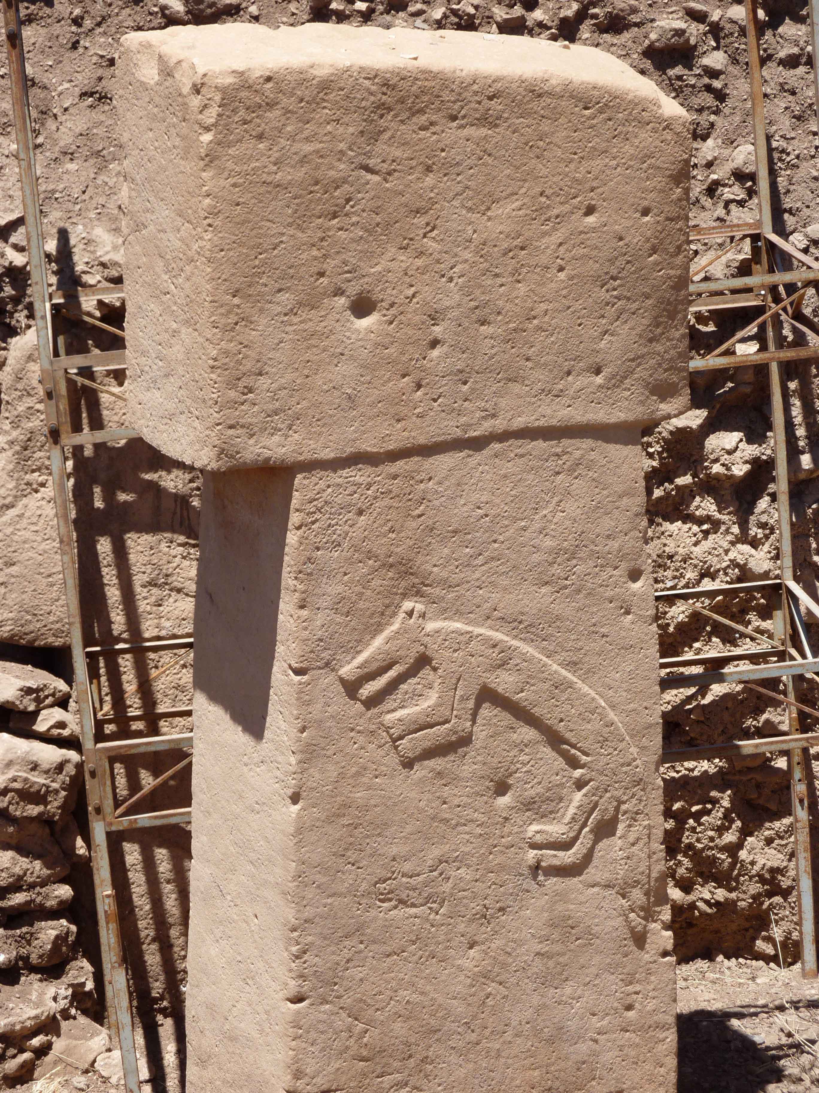 Göbekli Tepe is a c. 12,000-year-old archaeological site in Anatolia, Turkey. One characteristic feature of the site is the abundance of monumental stone pillars, often arranged in a circle and elaborately decorated in many cases. This pillar most likely depicts a fox.