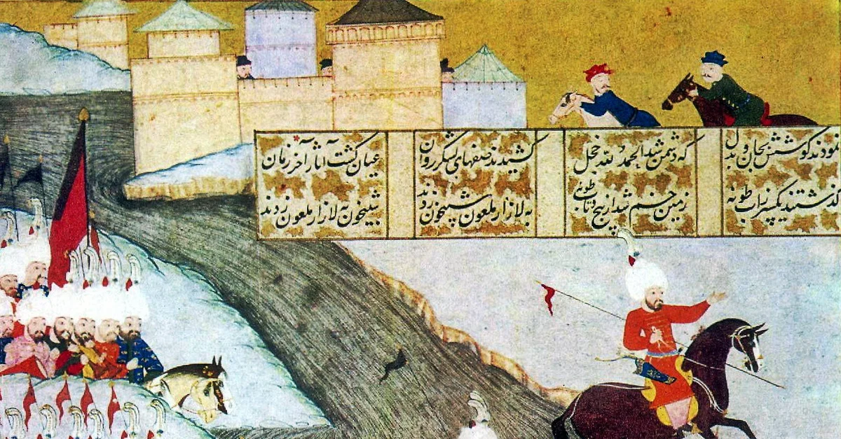 Ottoman miniature of the Szigetvár campaign (1566 CE) showing Ottoman troops and Tatars as avant-garde. This was Suleiman I's (r. 1520-1566 CE) last military campaign (Source: History of Sultan Süleyman, Dublin, Chester Beatty Library, MS 413, fol. 82a)