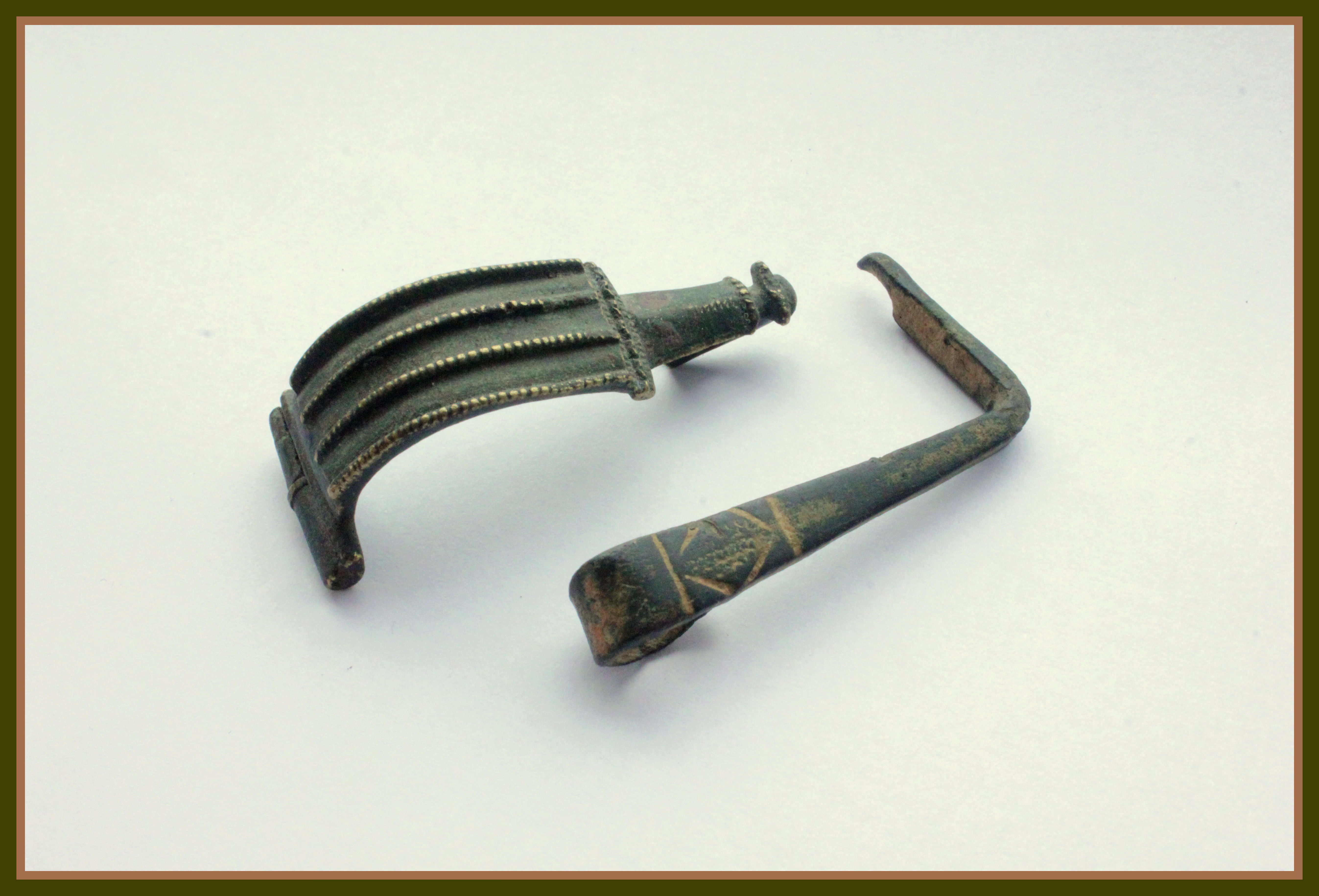 Roman aucissa derivative brooch and a simple key with a single tooth. Possibly 1st century CE. Provenance: unknown. (Private collection).