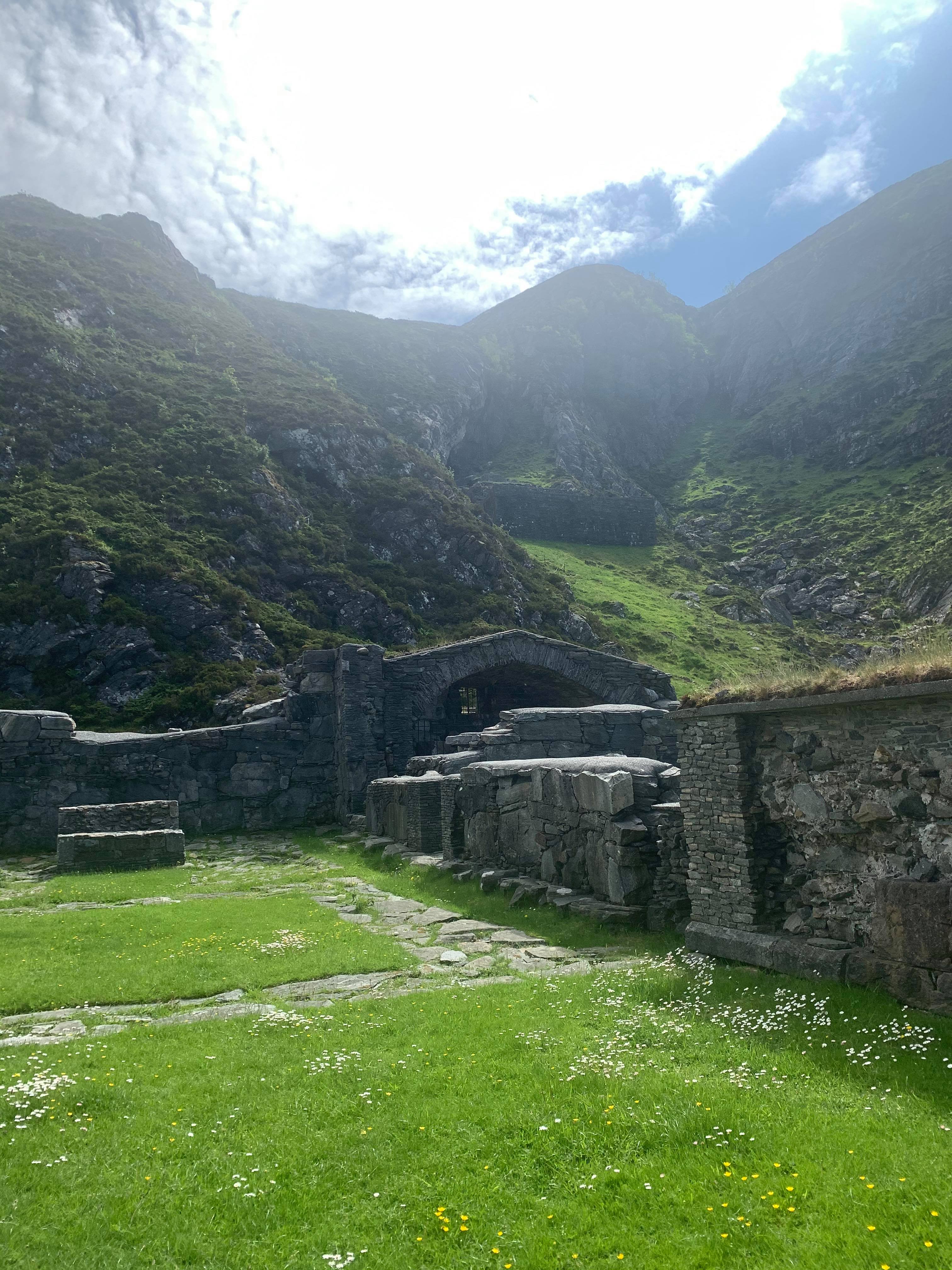 The monastery ruins on Selja Island, Stad, Norway. The Benedictine abbey was constructed in the 11th century CE and was linked to the legend of Saint Sunniva (10th century CE). Behind is the trail up to the sacred cave in the mountain side.