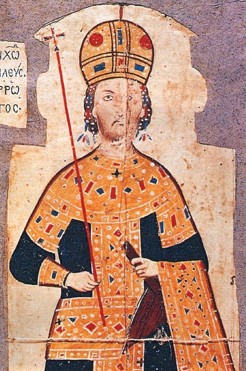 Andronikos III Palaiologos, Byzantine Emperor (r. 1328-1341 CE). 14th-century CE miniature. Stuttgart, Württembergische Landesbibliothek.