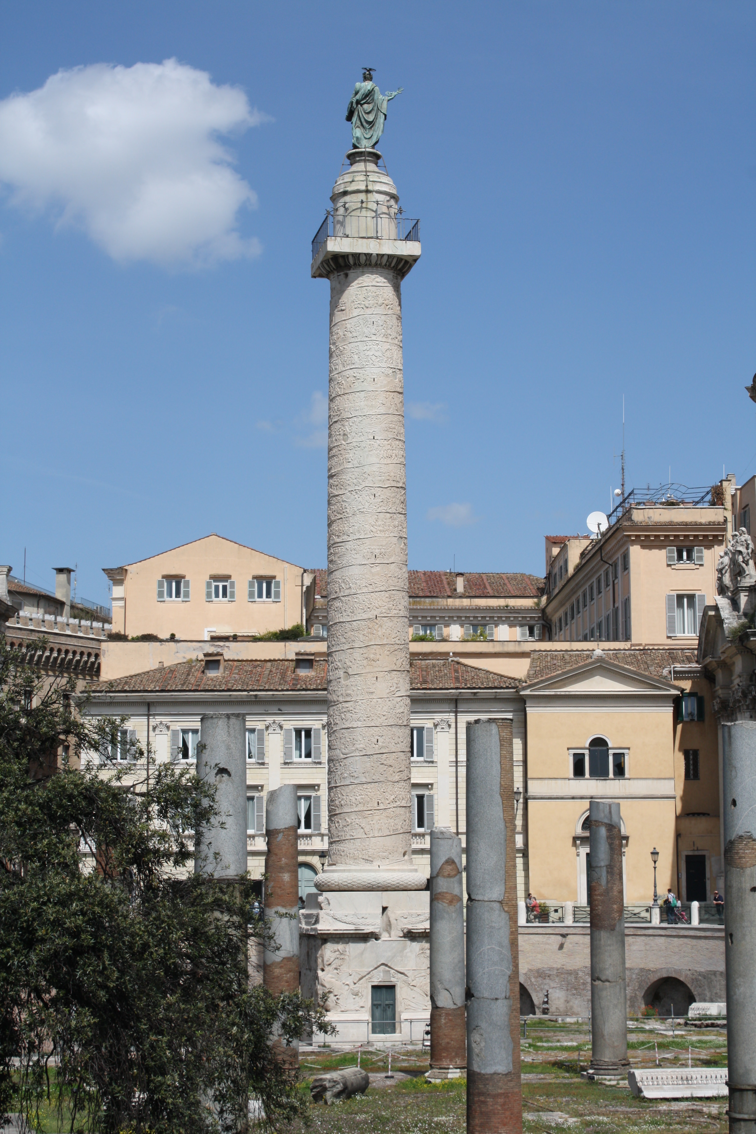 Trajan's Column in the Forum Romanum of Rome. Erected in 113 CE the column is covered in a spiral relief depicting scenes from the emperor's victorious Dacian campaigns.