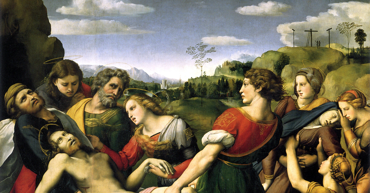 The Entombment of Christ (aka The Deposition) by the Italian Renaissance artist Raphael (1483-1520 CE). Completed in 1507 CE, the scene shows the body of Jesus Christ being removed from the Cross. (Galleria Borghese, Rome)