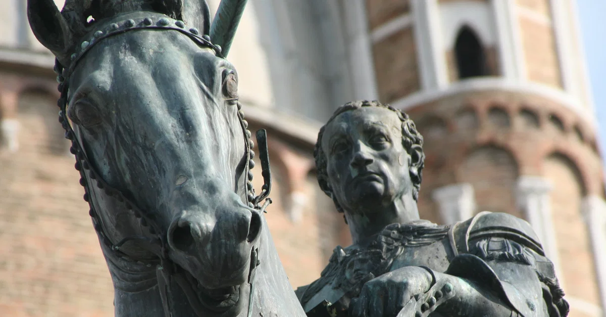 A detail of the bronze sculpture known as the Gattamelata by the Italian Renaissance sculptor Donatello (c. 1386-1466 CE). Created c. 1443 CE, the subject is the mercenary leader Erasmo da Narni (1370-1443 CE) and it stands in Piazza di San Antonio of Padua, Italy.
