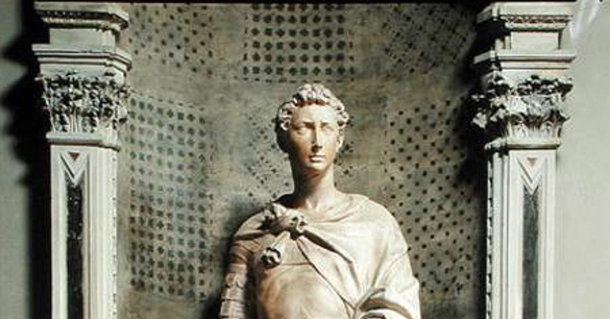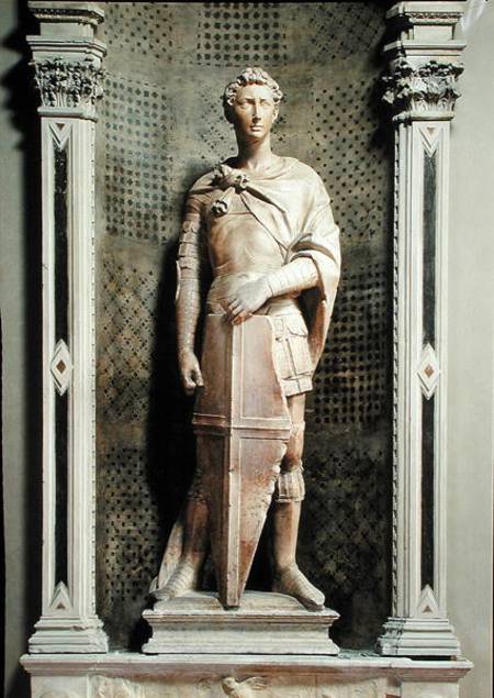 A marble figure of Saint George by the Italian Renaissance sculptor Donatello (c. 1386-1466 CE). Completed c. 1415 CE for the Orsanmichele in Florence. (Bargello, Florence)