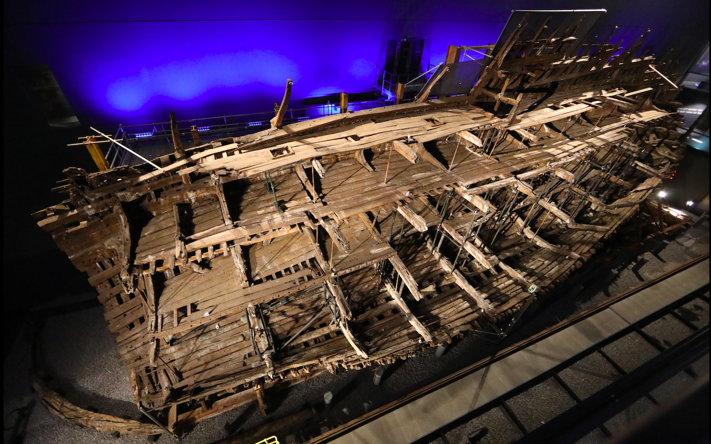 The surviving wreck of the Mary Rose. The English warship was part of Henry VIII's naval fleet but sank in a confrontation with a French fleet in July 1545 CE. (Portsmouth Historic Dockyard, England)