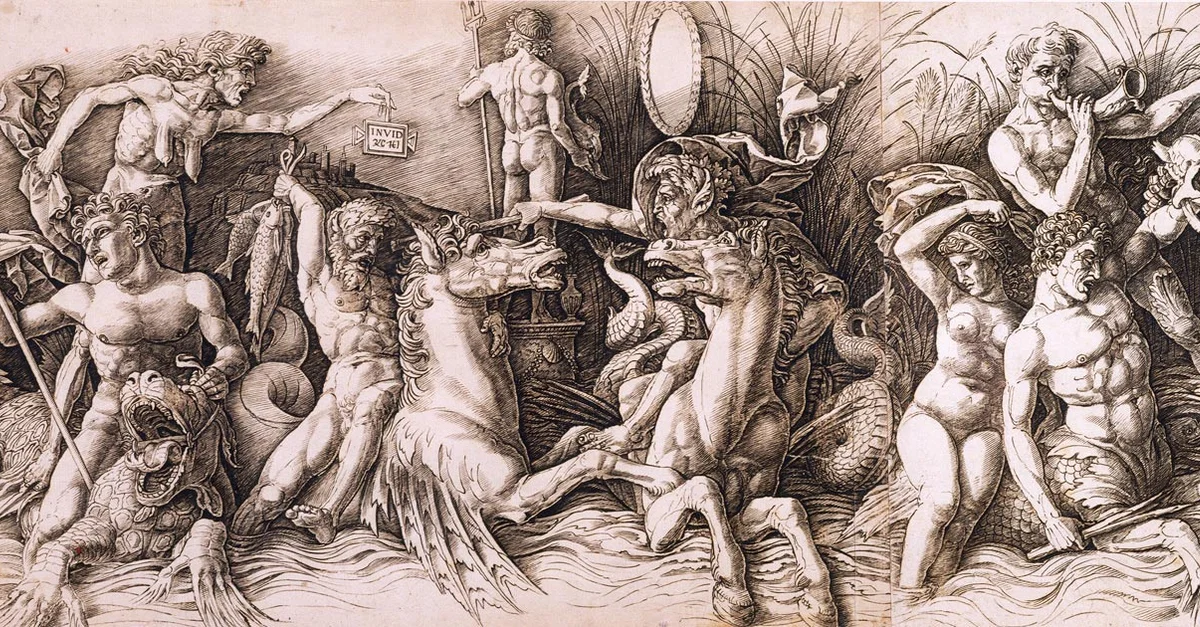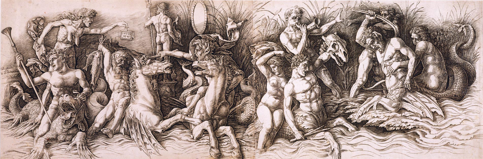 The c. 1490 CE engraving 'Battle of the Sea Gods' by the Italian Renaissance artist Andrea Mantegna (c. 1431-1506 CE). (Devonshire Collection, Chatsworth House, England)