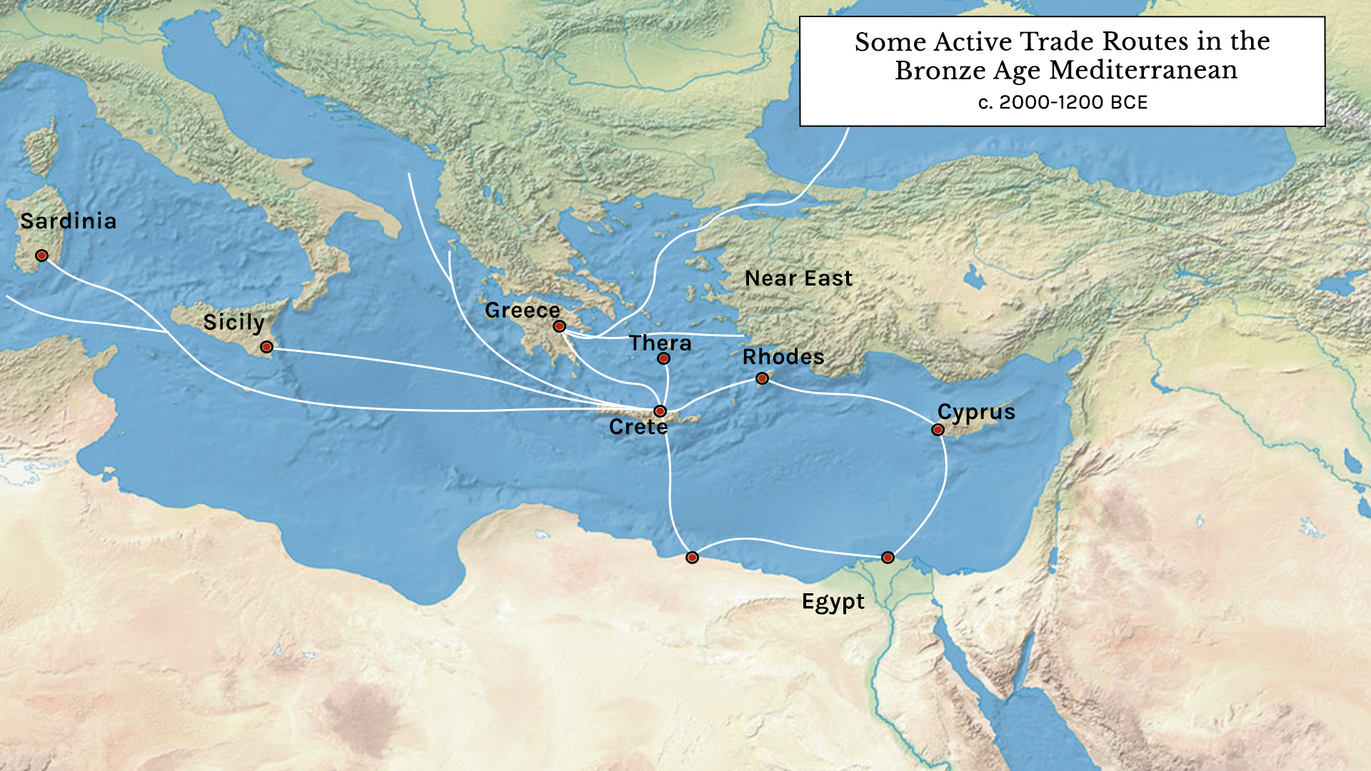Macquire, K. (2020, September 16). Some Active Trade Routes in the Bronze Age Mediterranean. World History Encyclopedia. https://www.worldhistory.org/image/12695/some-active-trade-routes-in-the-bronze-age-mediter/