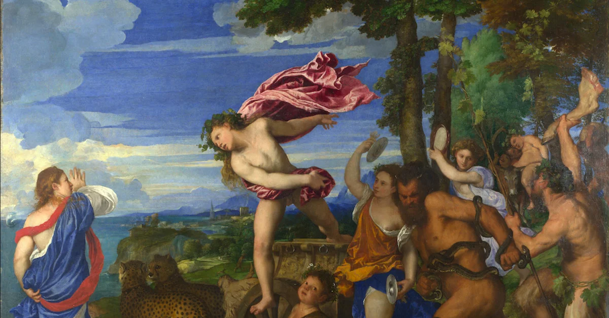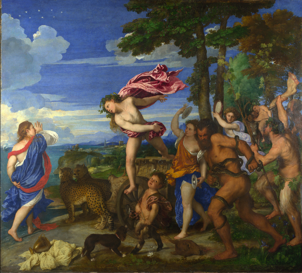 The Bacchus and Ariadne painting created by the Italian Renaissance artist Titian (c. 1487-1576 CE). 1518-1523 CE. (National Gallery, London)