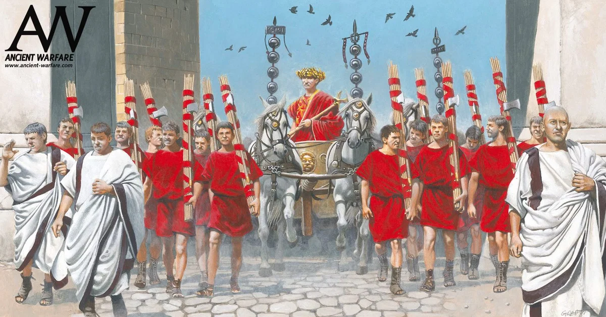 An Augustan era Roman triumph, celebrating a military victory. Illustration by Zvonimir Grbasic.
