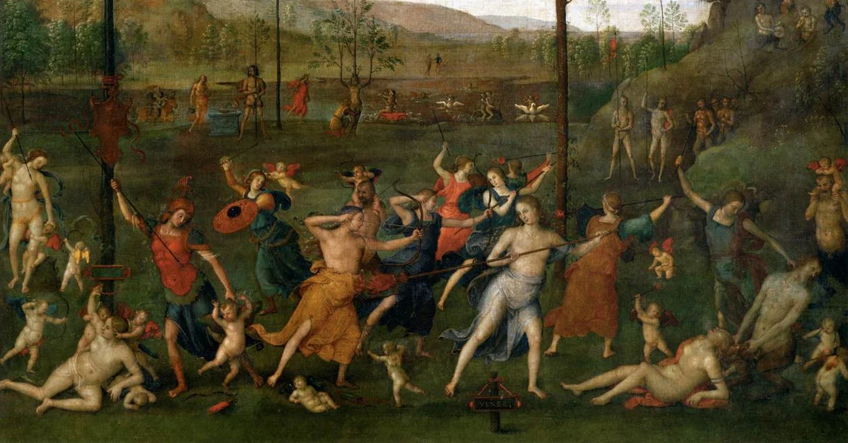 Battle between Love and Chastity, a painting for Isabella d’Este (1474-1539 CE) by the Italian Renaissance artist Pietro Perugino (c. 1450-1523 CE). Created 1503-5 CE. (Louvre, Paris)