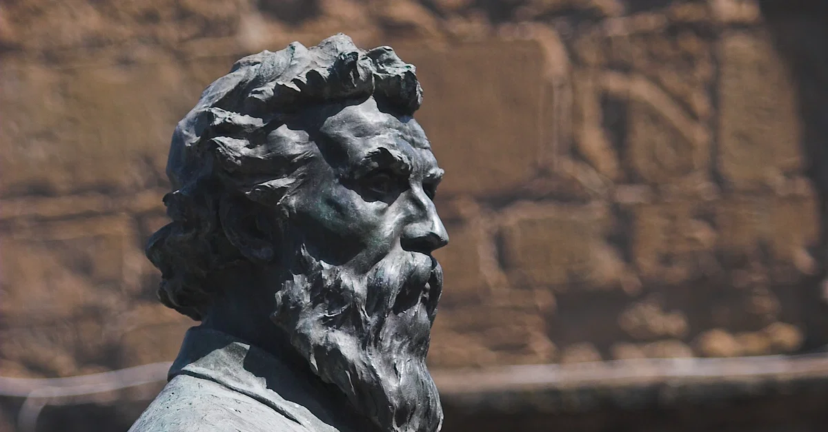 A 1901 CE portrait bust of the Italian Renaissance artist Benvenuto Cellini (1500-1571 CE). By Raffaello Romanelli, Ponte Vecchio, Florence.