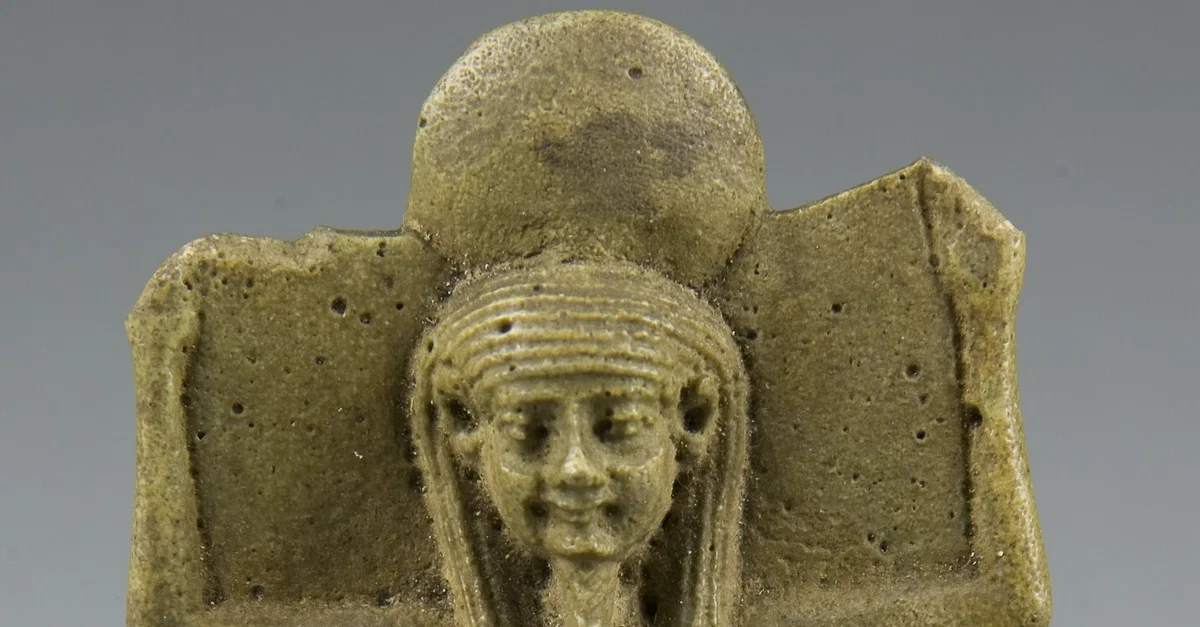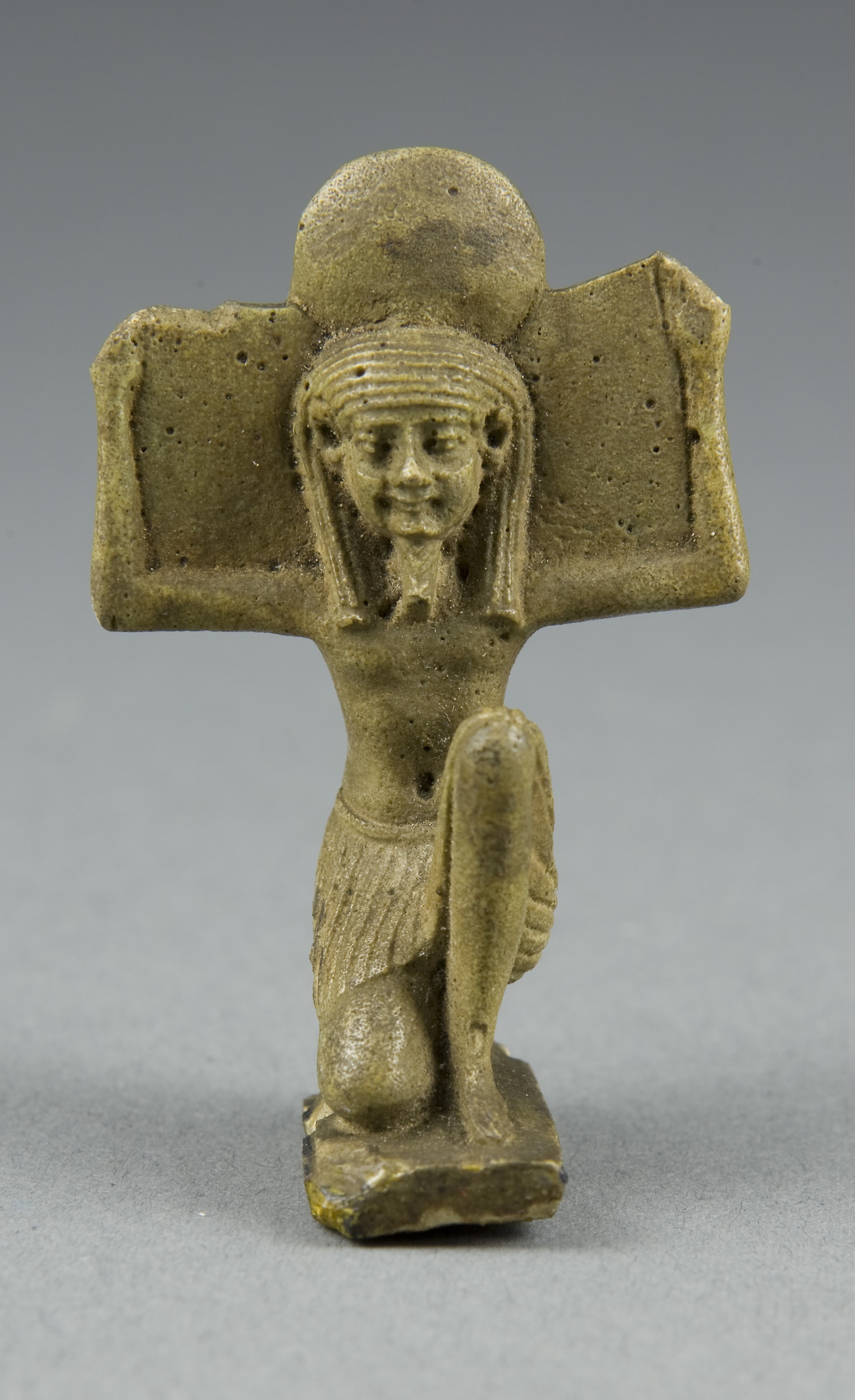 Faience amulet depicting the Egyptian god Shu. Late Period, 26th Dynasty, 664-525 BCE. (Art Institute of Chicago)