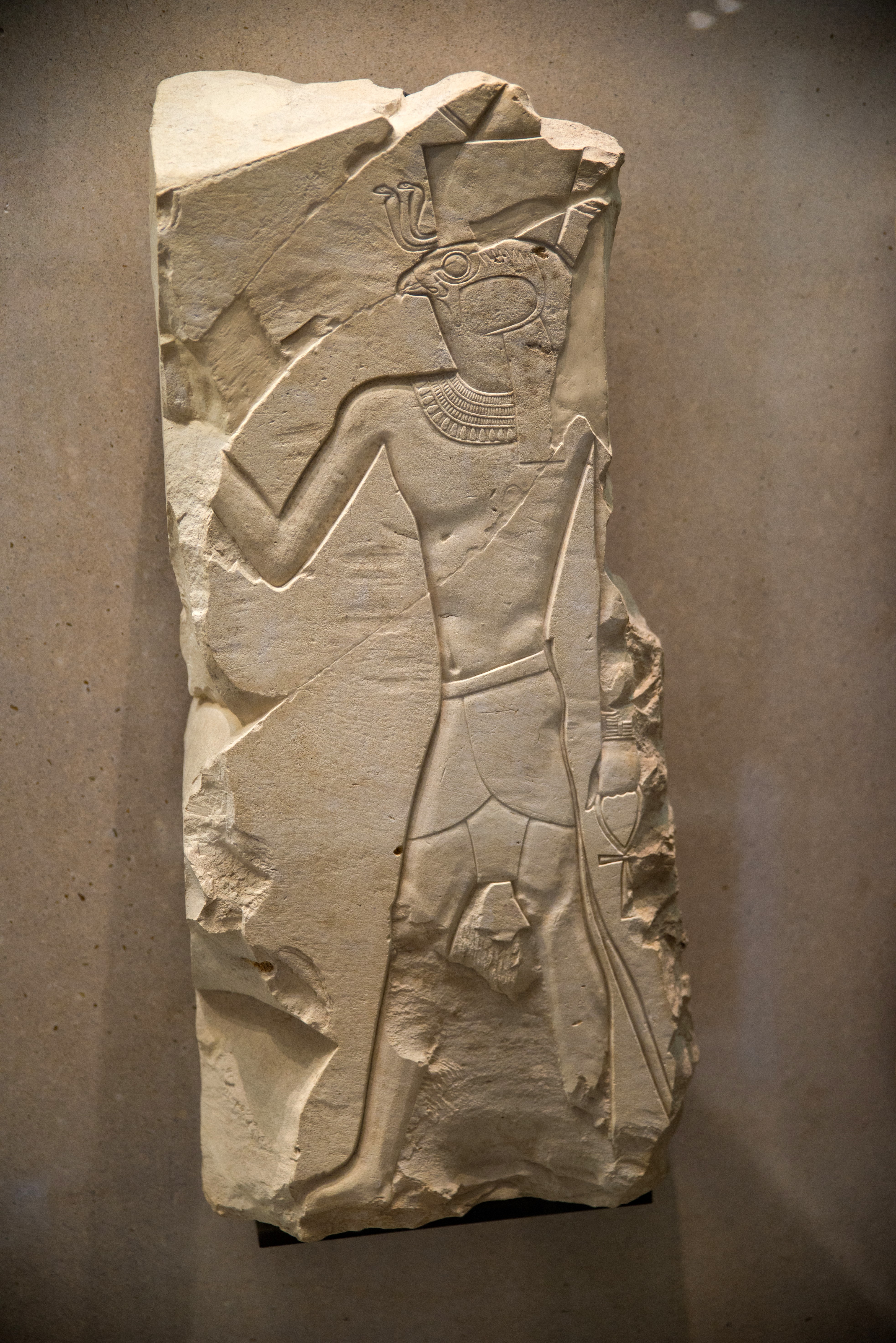 Relief depicting the Egyptian war-god Montu, from his temple in el-Tod. 11th Dynasty (c. 2115-1991 BCE). (Louvre Museum)