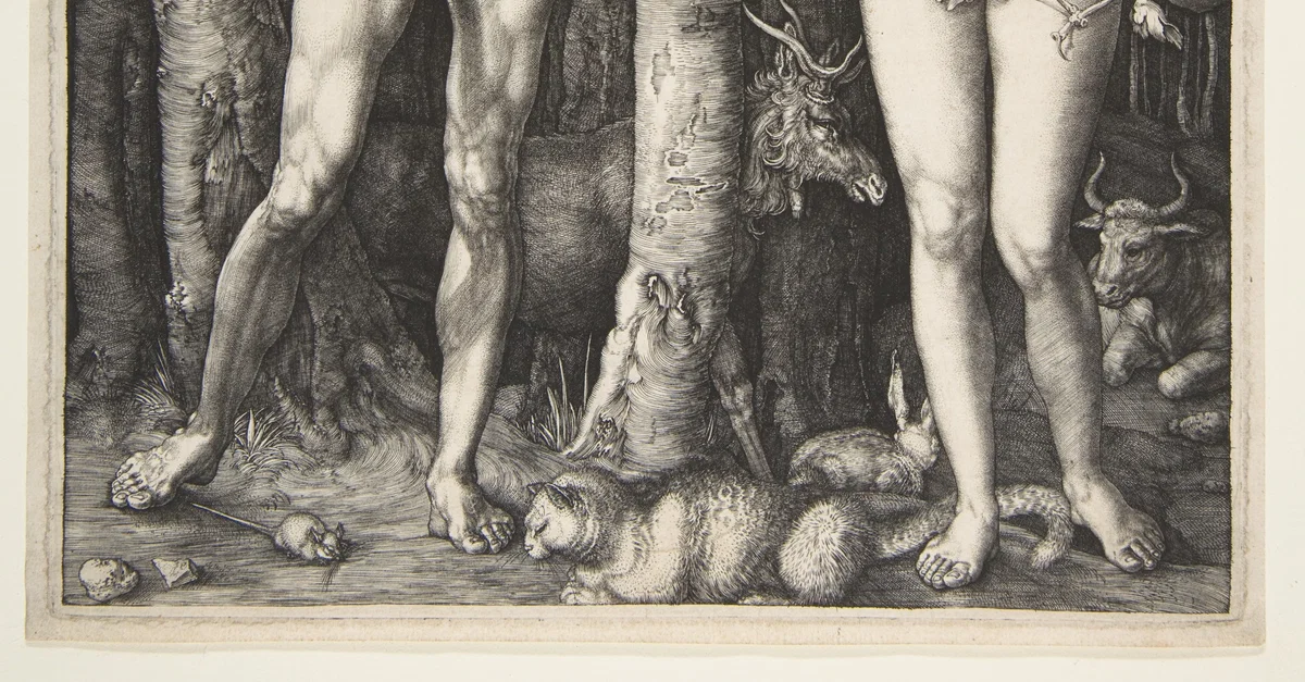 Adam and Eve, a print engraving by the German Renaissance artist Albrecht Dürer (1471–1528). 1504 CE. (Metropolitan Museum of Art, New York)