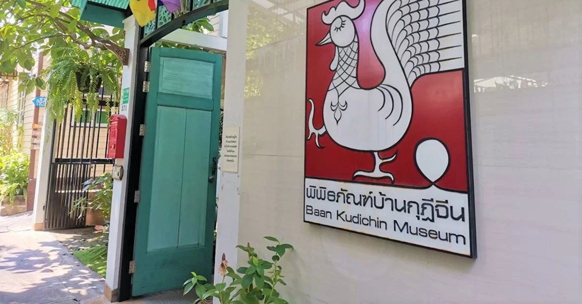 At the entrance to the Baan Kudichin Museum in Kudeejeen, Bangkok Thailand is a Portuguese rooster celebrating the Portuguese heritage of the Kudeejeen area.