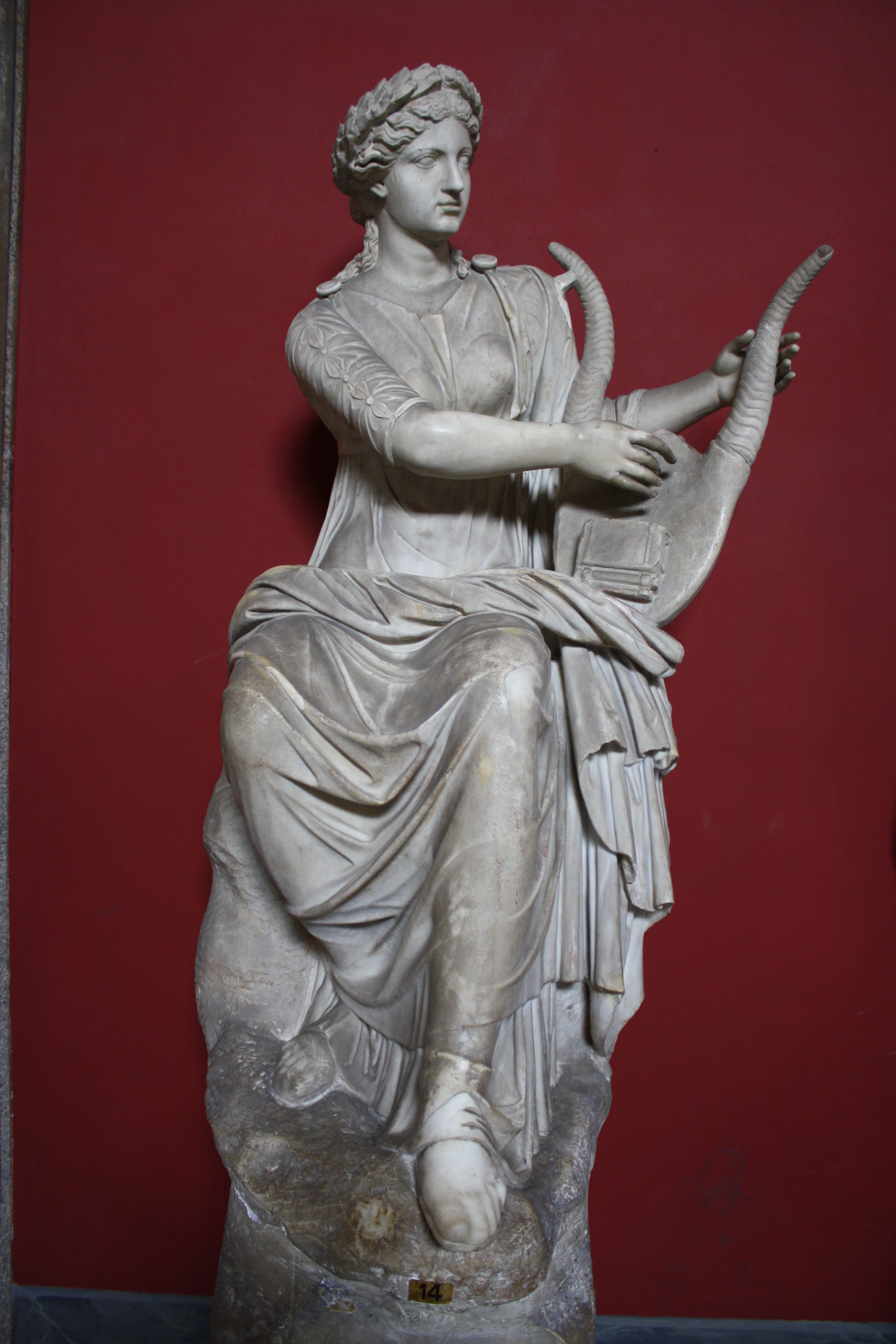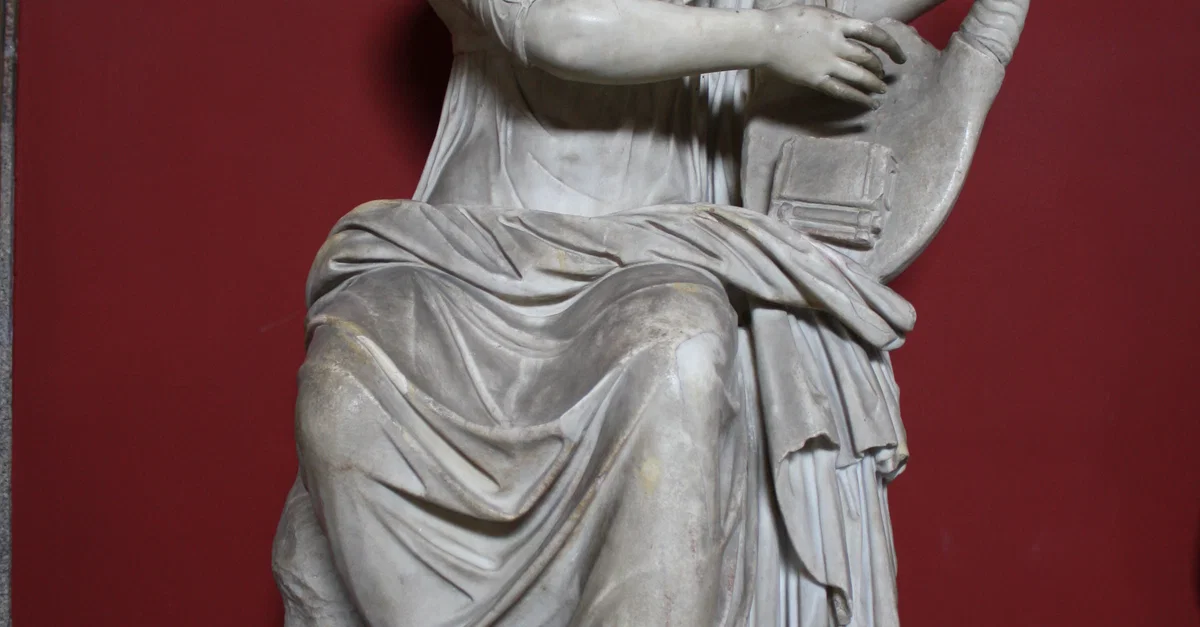 A Roman sculpture of Terpsichore, the Muse of Dance, playing a lyre, 1st century CE. (Vatican Museums, Rome).