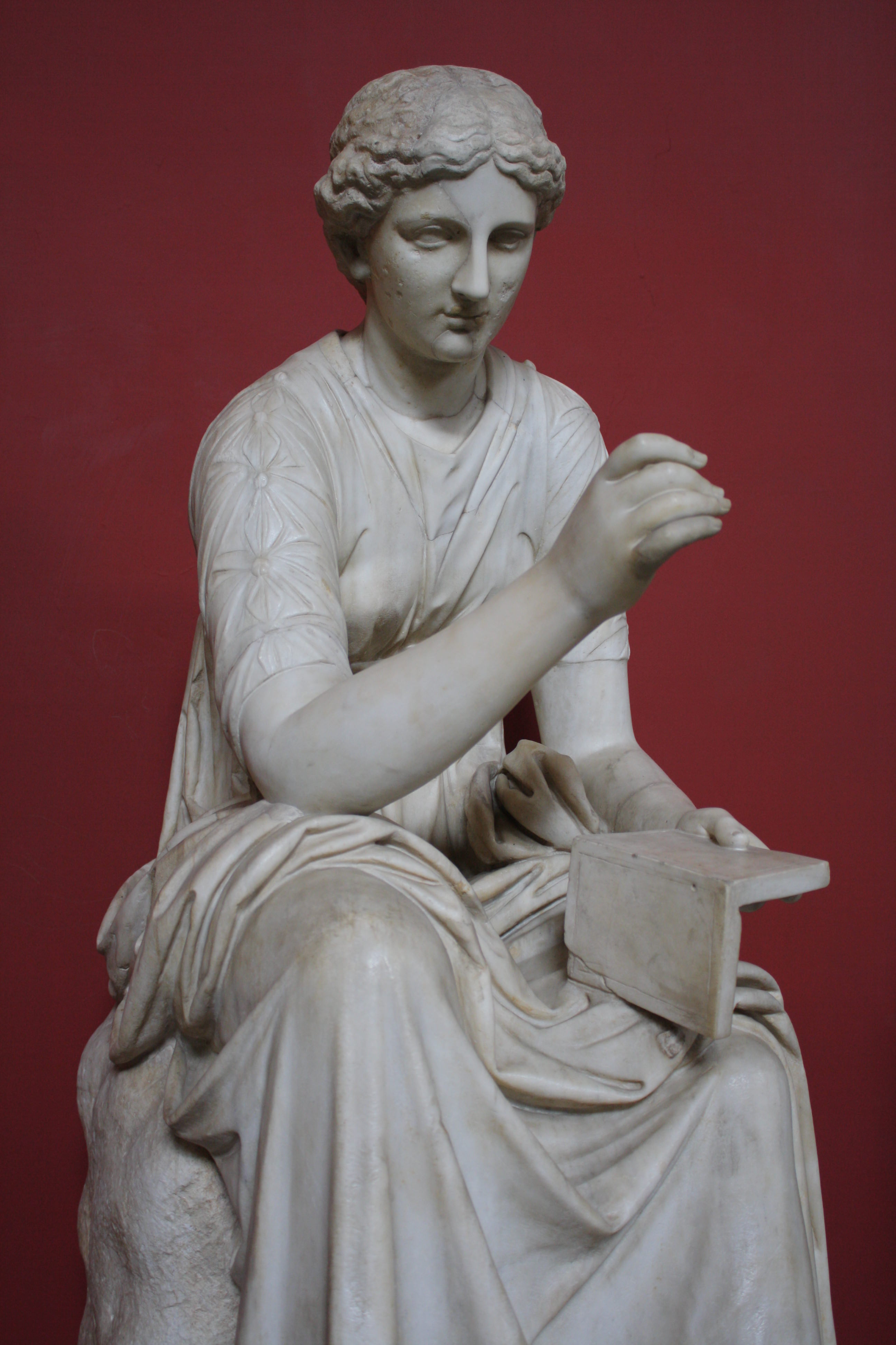 A Roman 2nd century CE sculpture of Calliope, the Muse of epic poetry. The sculpture is a copy of a 2nd century BCE Hellenistic sculpture which was itself a copy of a 4th century BCE Greek original. (Vatican Museums, Rome).
