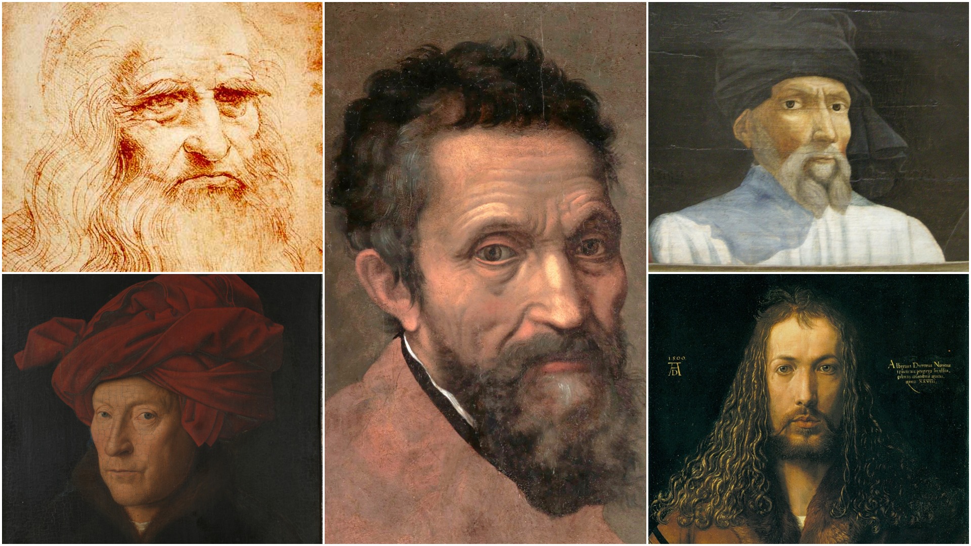 A composite image showing five of the great Renaissance artists.