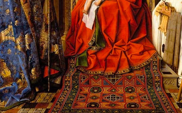 A detail of The Madonna with Canon van der Paele painting by the Netherlandish Renaissance artist Jan van Eyck (c. 1390-1441 CE). 1436 CE. (Groeningemuseum, Bruges, Belgium)
