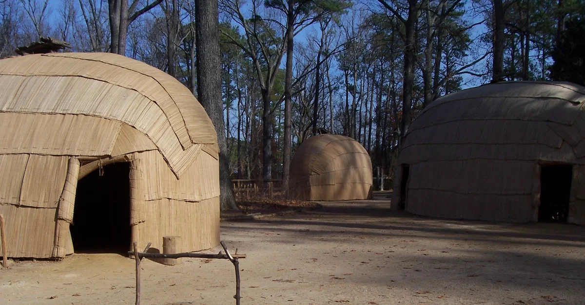Reconstructed 17th-century CE Powhatan Village at the Jamestown Settlement living history museum.