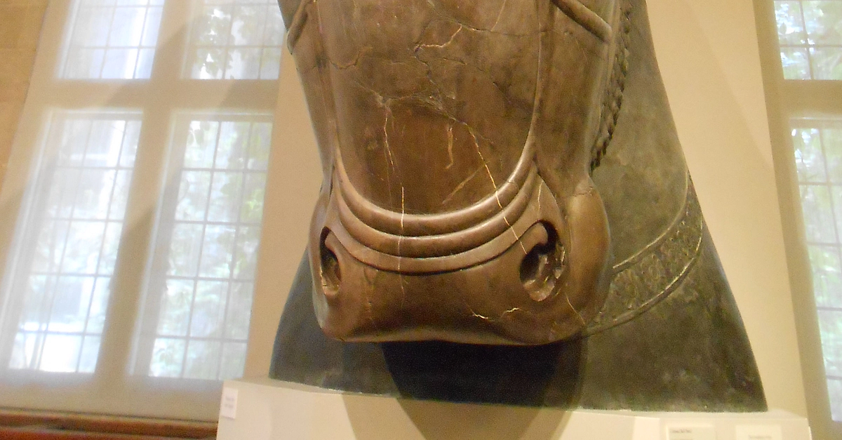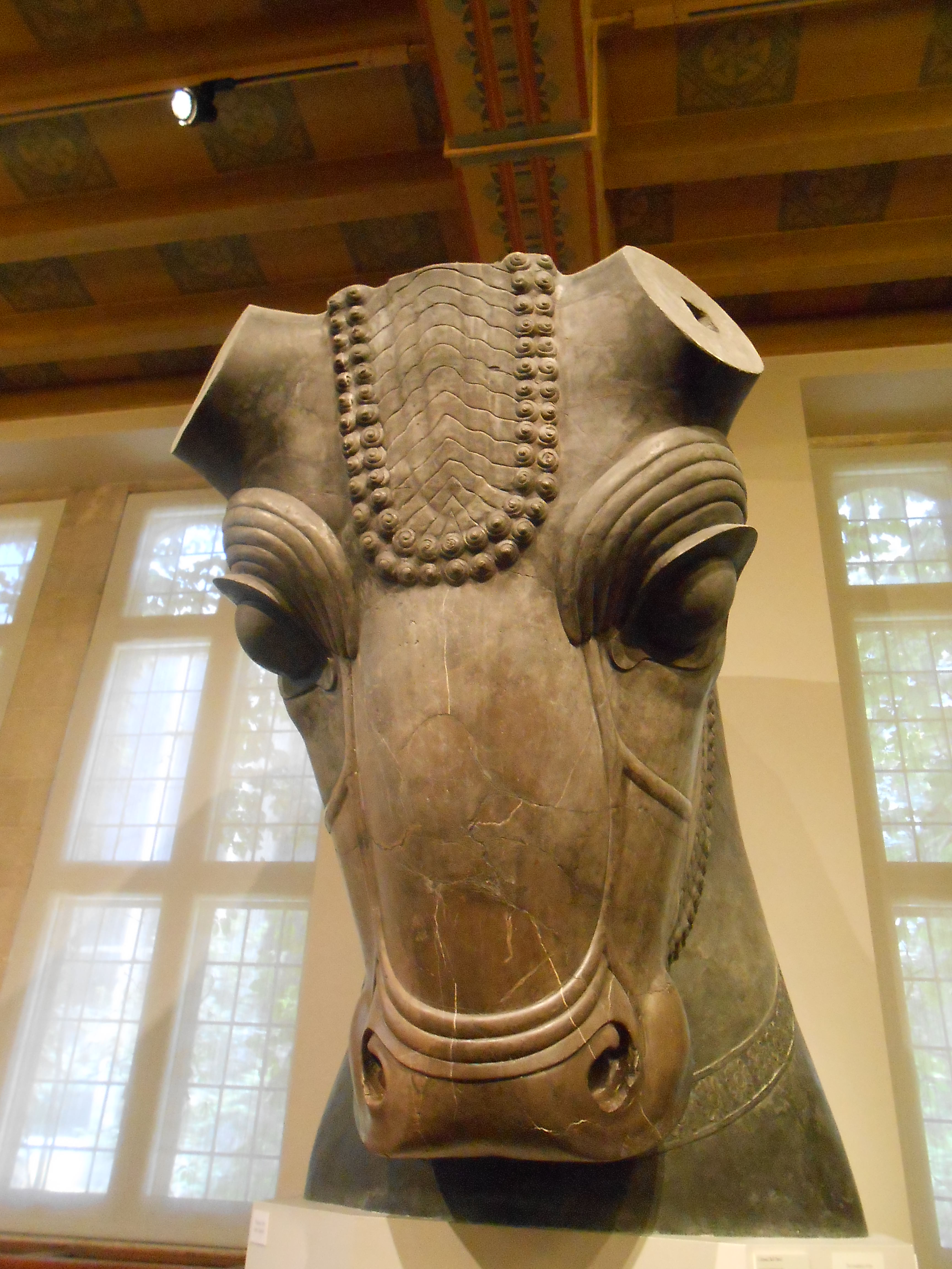 Colossal Bull Head from Hundred-Column Hall, Dark gray limestone, Persepolis (Iran), Achaemenid Period (Reign of Xerxes and Ataxerxes I, 486-424 BCE), Oriental Institute, University of Chicago.