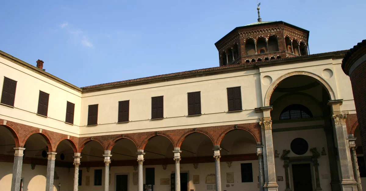 The colonnades of the canonica in Sant'Ambrogio Basilica, Milan. Designed by the Renaissance architect Donato Bramante (c. 1444-1514 CE) in the 1490s CE.