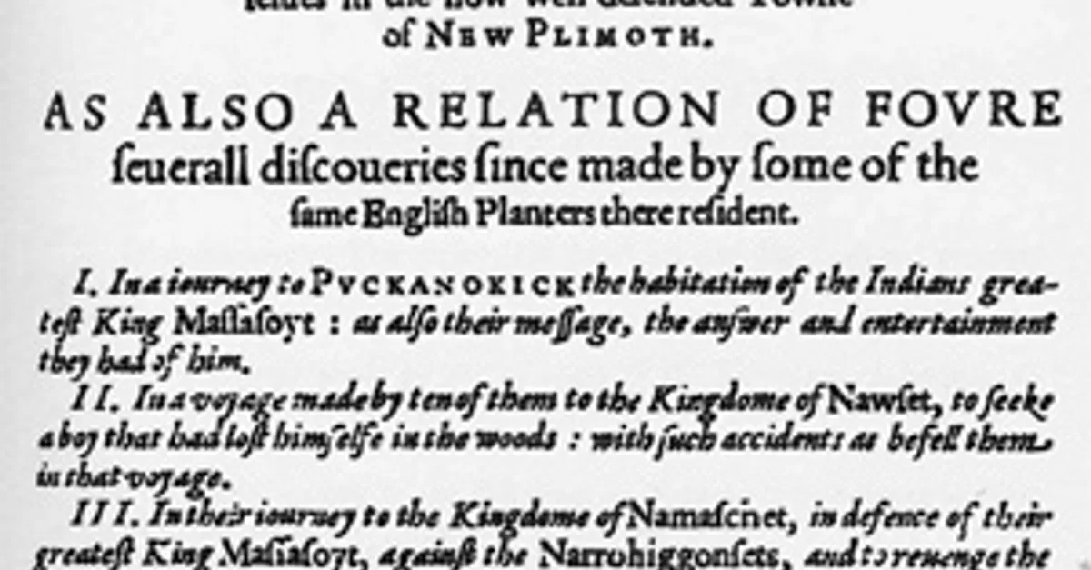 Morton, William Bradford and Edward Winslow, and George. "Mourt's Relation." World History Encyclopedia, November 17, 2020. https://www.worldhistory.org/image/13118/mourts-relation/.