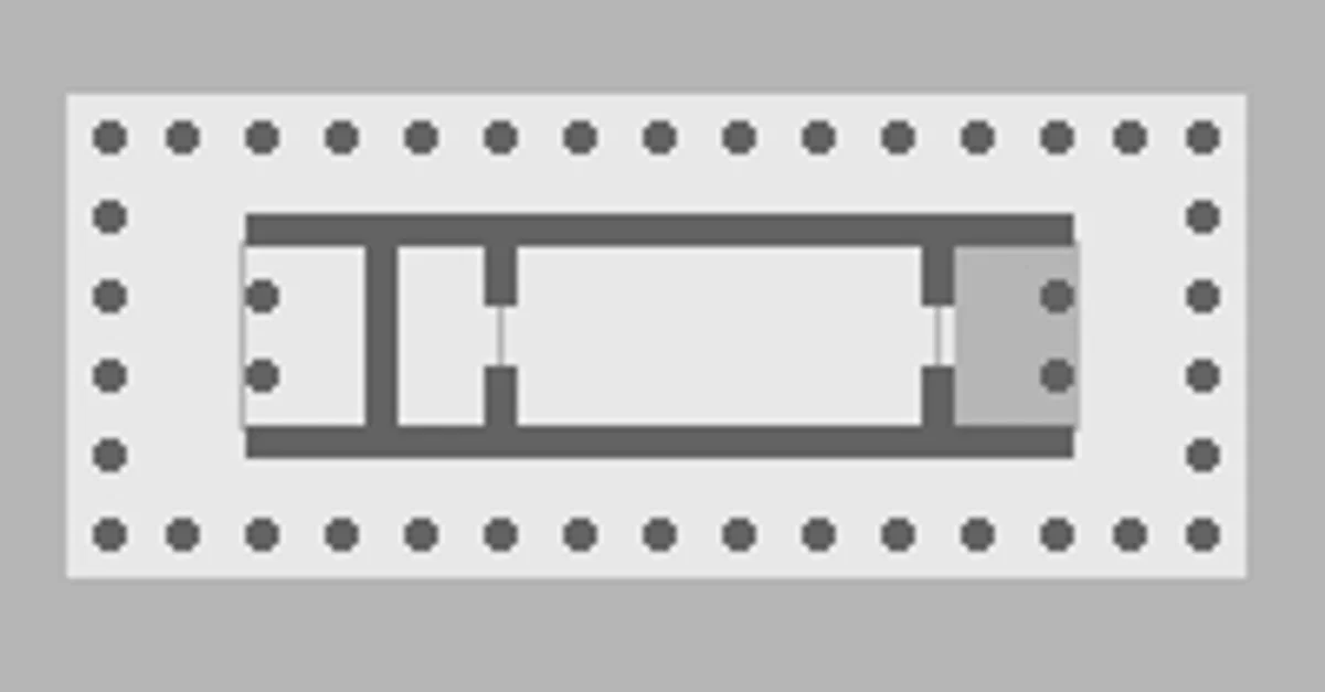 A diagram illustrating the pronaos of a temple - the space between the outer columns and entrance of a Classical temple.