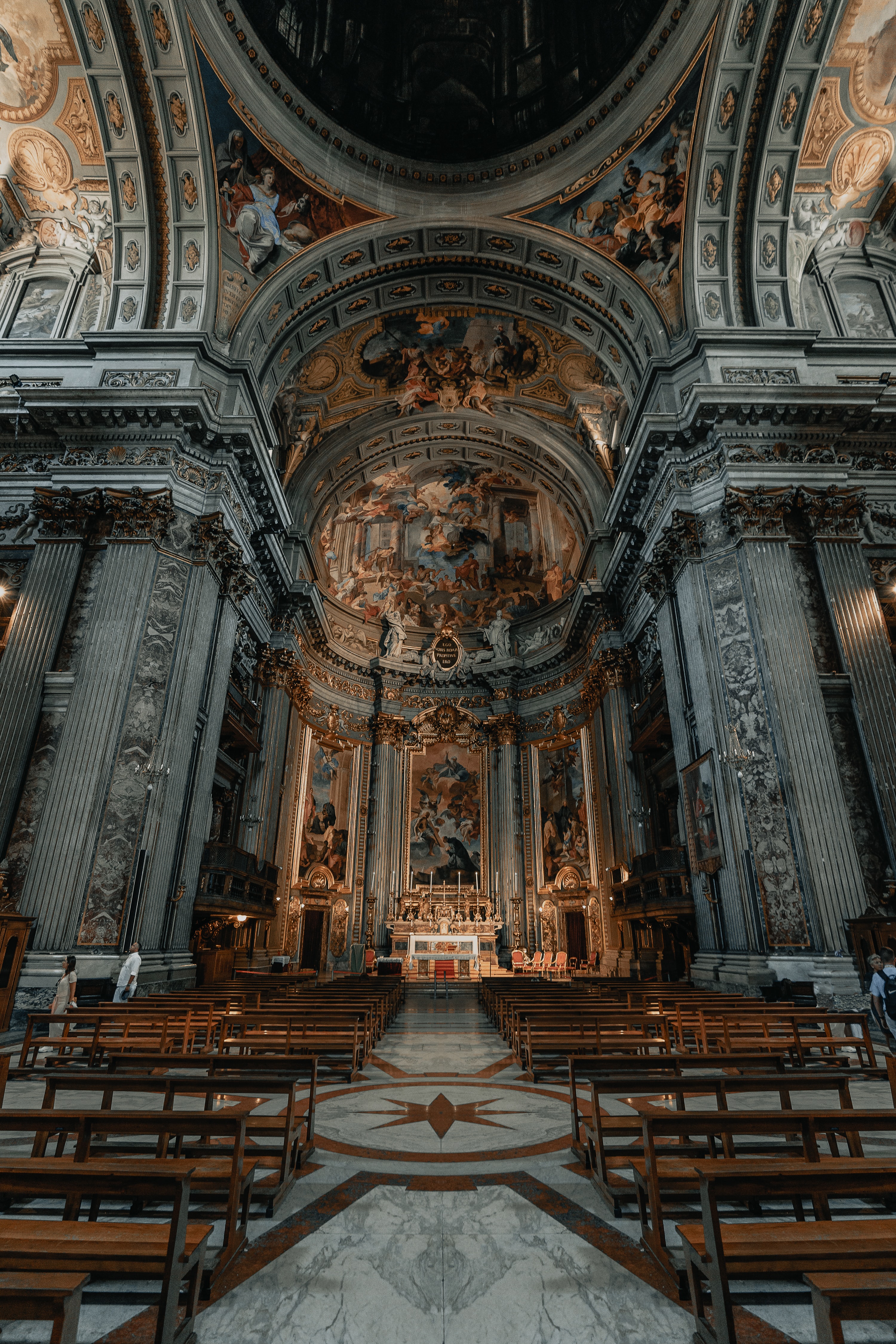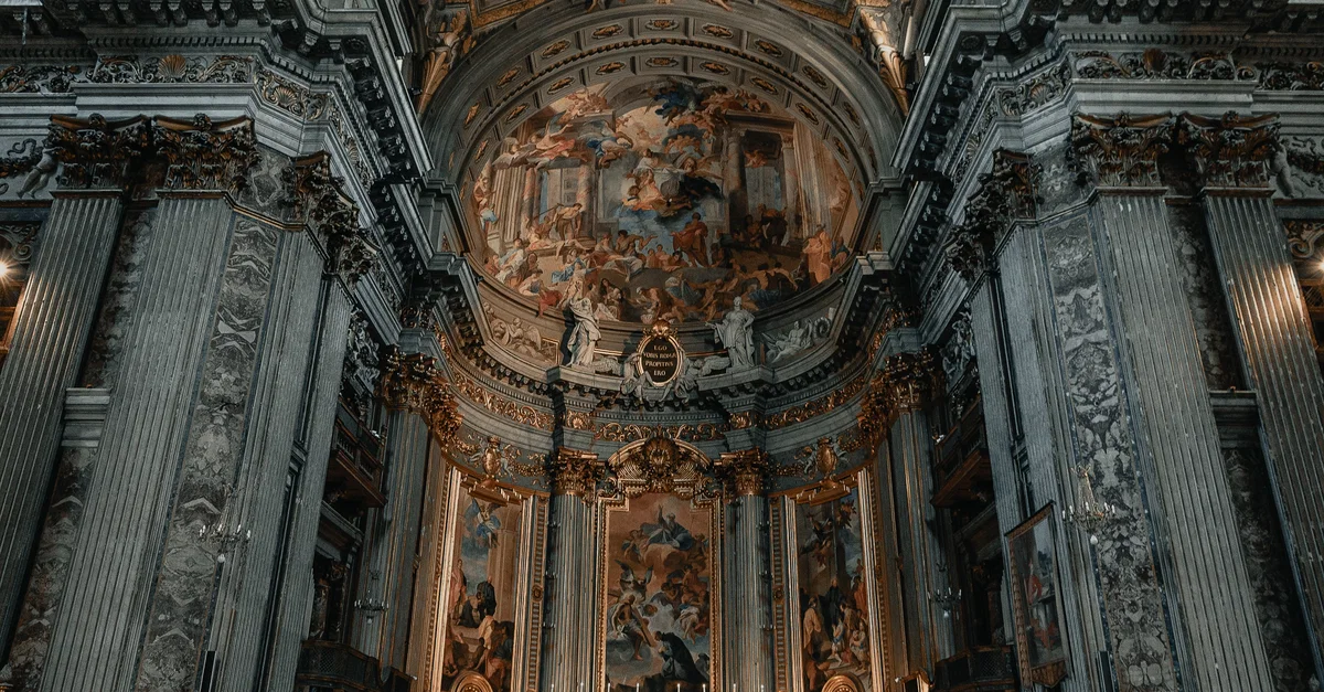 Interior view of the nave of the Church of Saint Ignatius of Loyola, Rome. The Baroque cathedral was constructed between 1626 and 1650 CE.