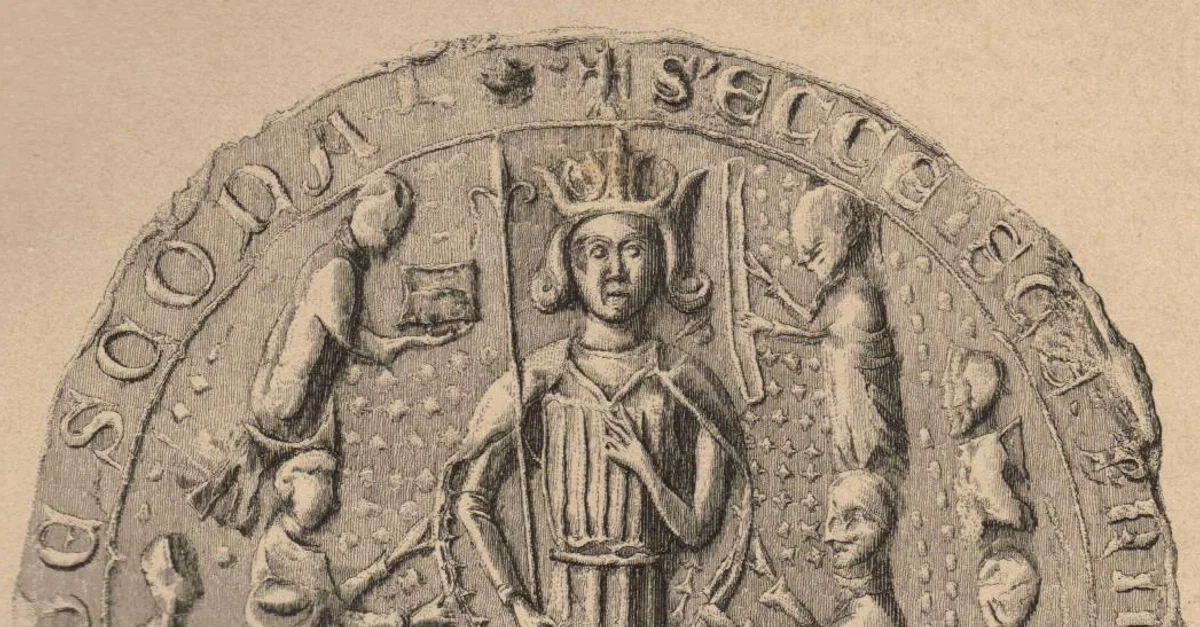 The Great Seal of Scone Abbey, Scotland. It shows the inauguration of a medieval Scottish king.