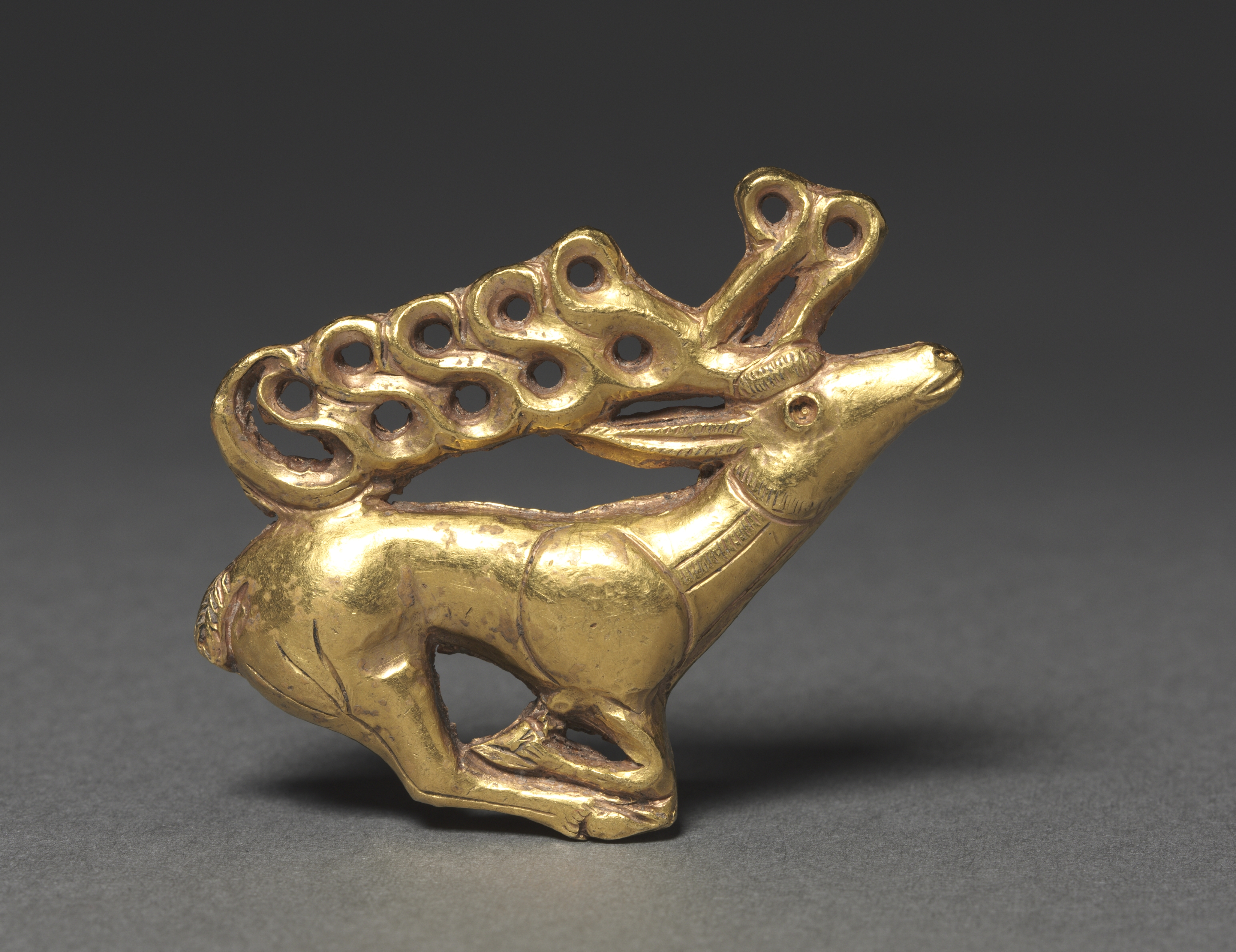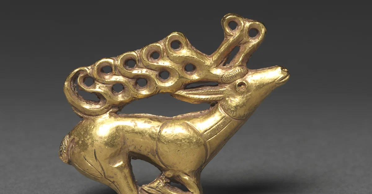 Scythian gold plaque, showing a stag. Western Asia, 5th-4th century BCE. Cleveland Museum of Art, The Severance and Greta Millikin Purchase Fund