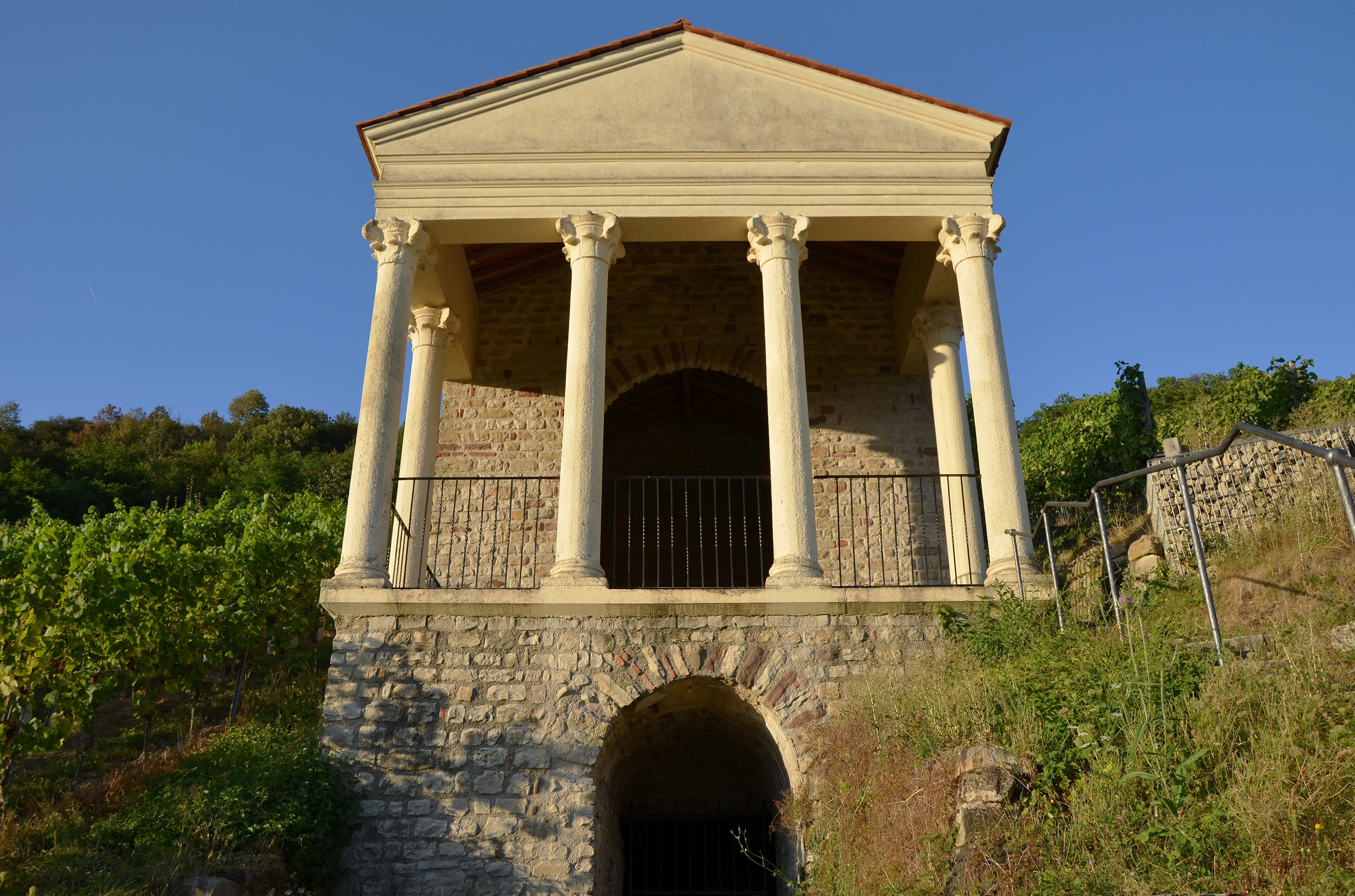 The Grutenhäuschen is a partially reconstructed Roman grave temple located in a vineyard slope near Igel on the Moselle in southwestern Germany. This funerary monument from the 3rd century CE was restored on the remains of the original burial chamber in 1962 by the Rheinisches Landesmuseum Trier and reconstructed in 2001. It consists of a two-story temple-like structure with an open, accessible vaulted burial chamber.