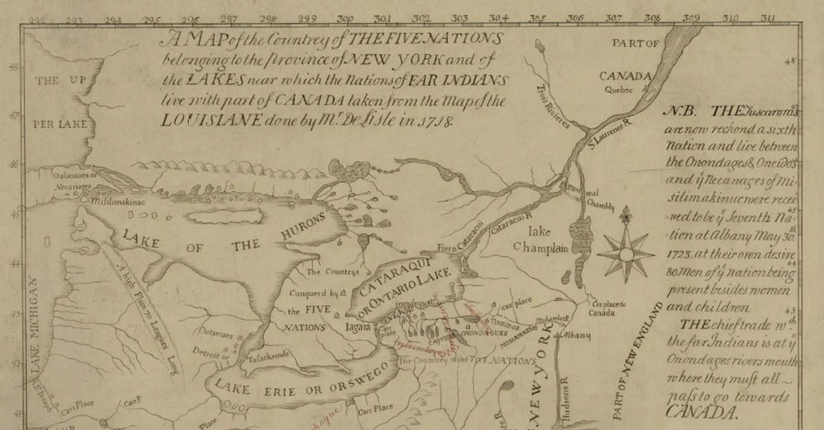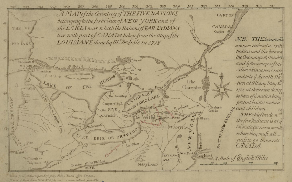 Map of the Five Nations, 1730 CE. Darlington map collection, Archives Service Center, University Library System, University of Pittsburgh, Pittsburgh Pittsburgh, PA US