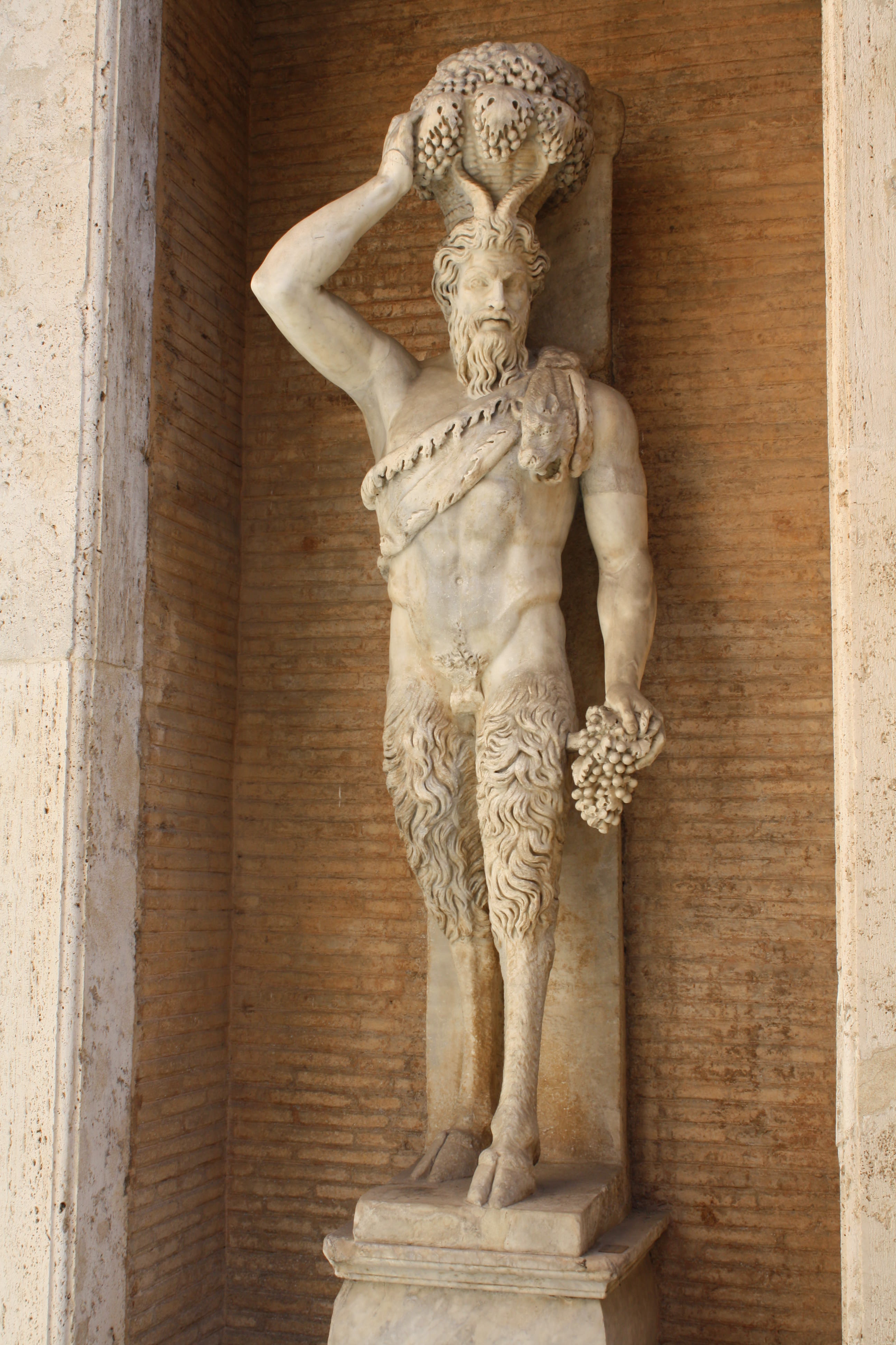 A Roman statue of the pastoral god Pan, from a Hellenistic original. Provenance: Campo Marzio, Rome. (Capitoline Museums, Rome).