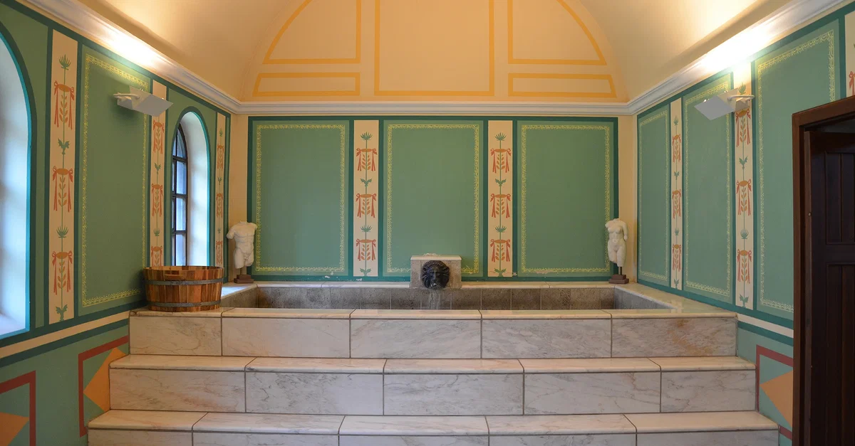 The faithfully reconstructed and fully functioning caldarium (hot bath) of the Roman Villa Borg in Germany.