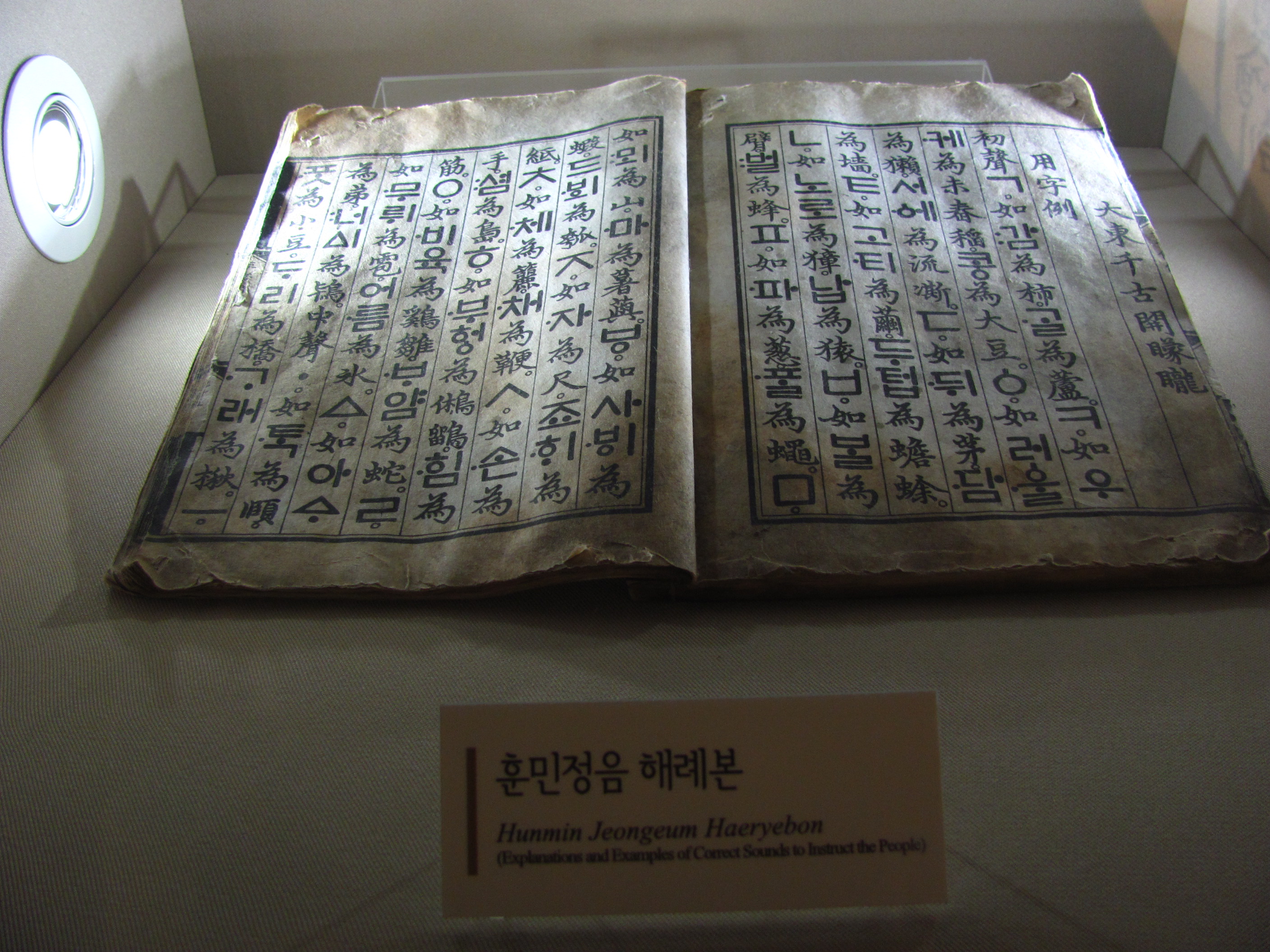 Hunmin Jeongeum (Explanations and Examples of Correct Sounds to Instruct the People) on the Korean language's native alphabet, the Hangul, developed by Sejong the Great (1418-1450 CE) in 1443 CE and published in 1446 CE.